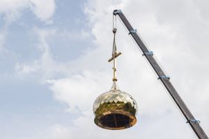 После песнопений и молитвословий надкупольный крест был окроплен святой водой и с помощью профессионалов под народное пение тропаря Кресту Христову в скором времени был воздвигнут в навершие храмового здания. Теперь над Озерным на храме в окружении прекрасного большого сквера высится знак утверждения нашей веры и сияет отражением солнечных лучей внушительных размеров купол.