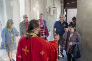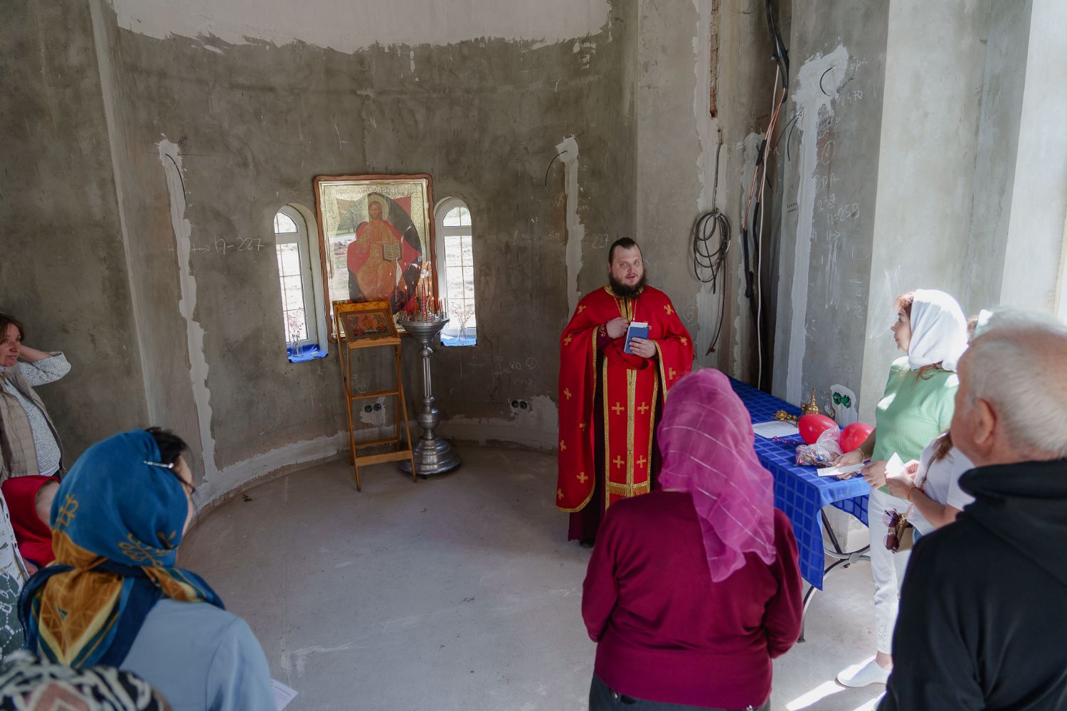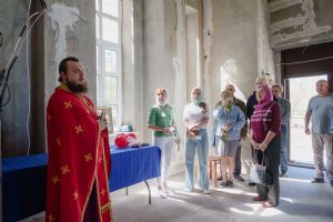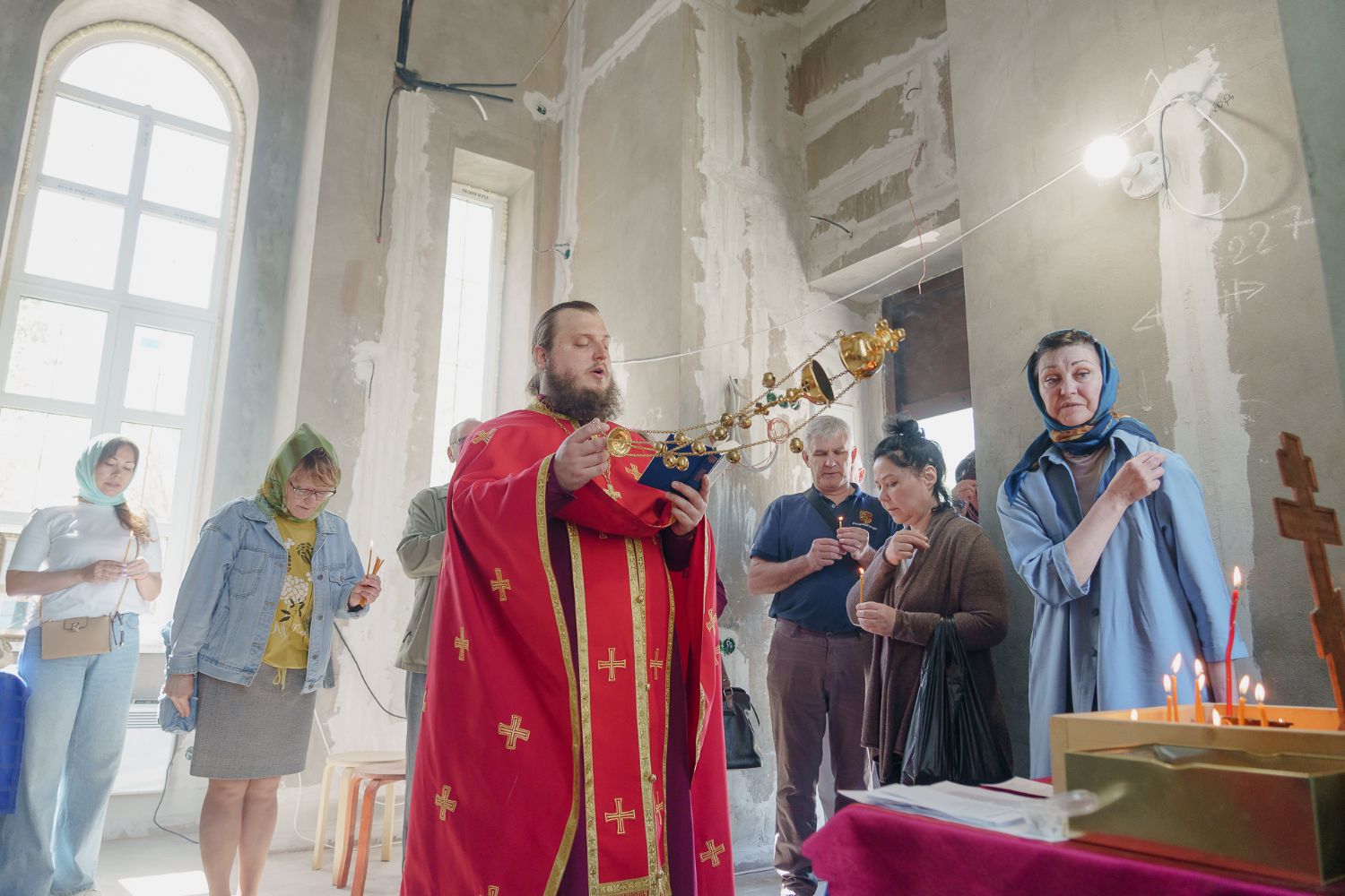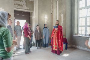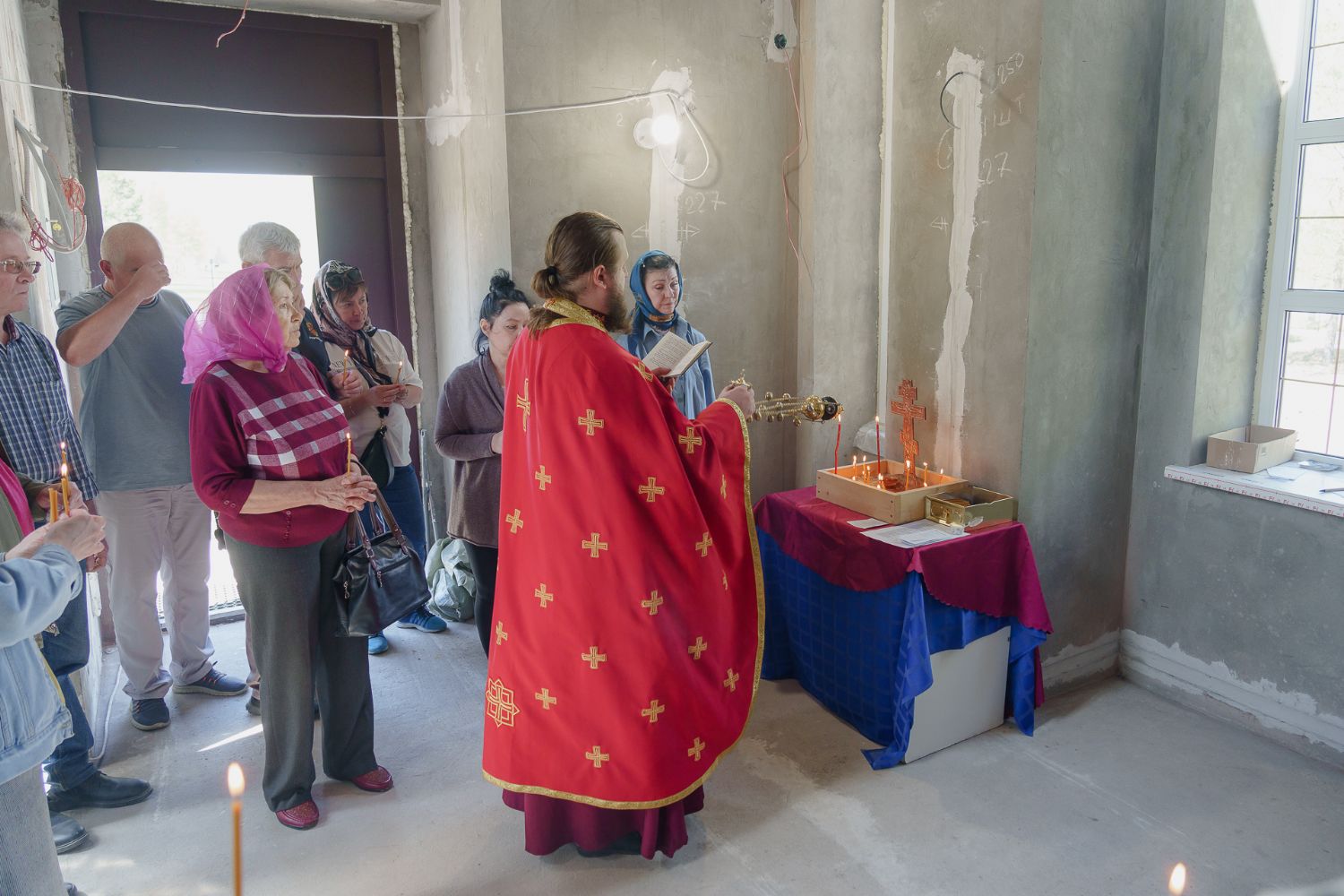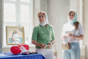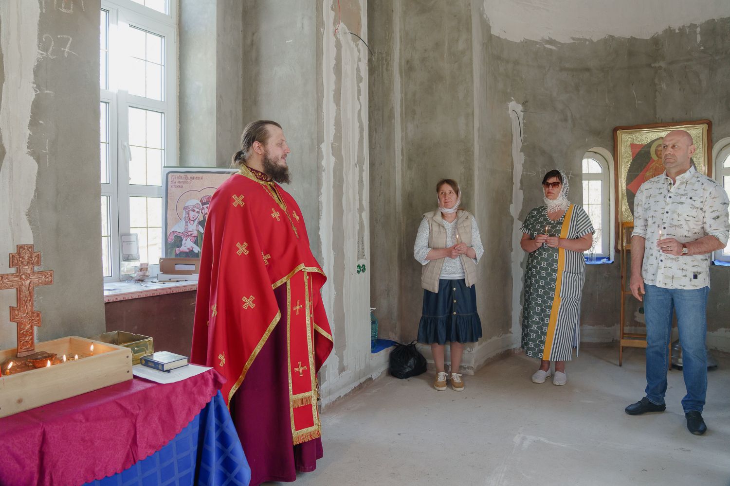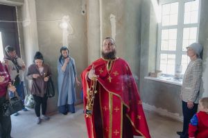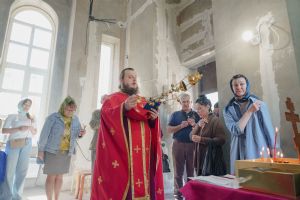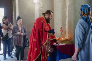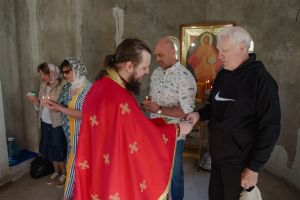 По завершении общей молитвы отец Александр поздравил всех с праздником и преподнём в подарок каждому молящемуся небольшой подарок - карманный церковный календарь с изображением строящегося храма-часовни. Батюшка отметил, что в богослужебной жизни прихода придётся сделать небольшой временный перерыв - ради окончания внутренних отделочных работ. О расписании богослужений в июнн 2024 года будет сообщено дополнительно.