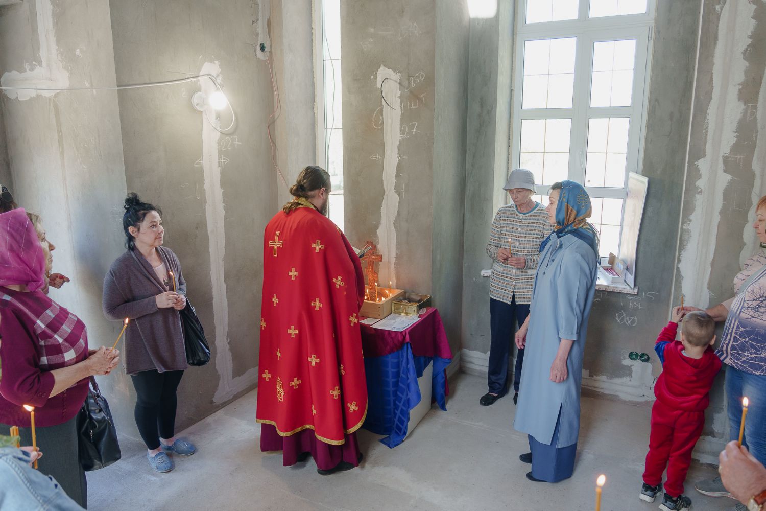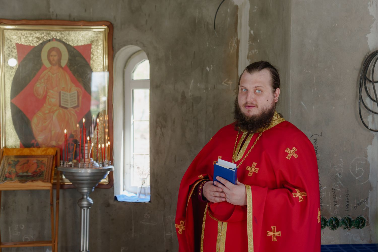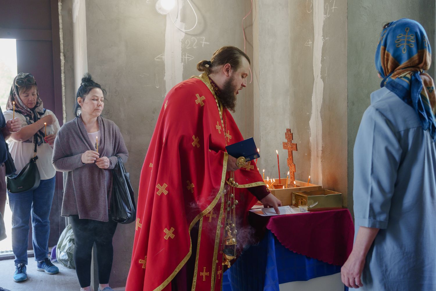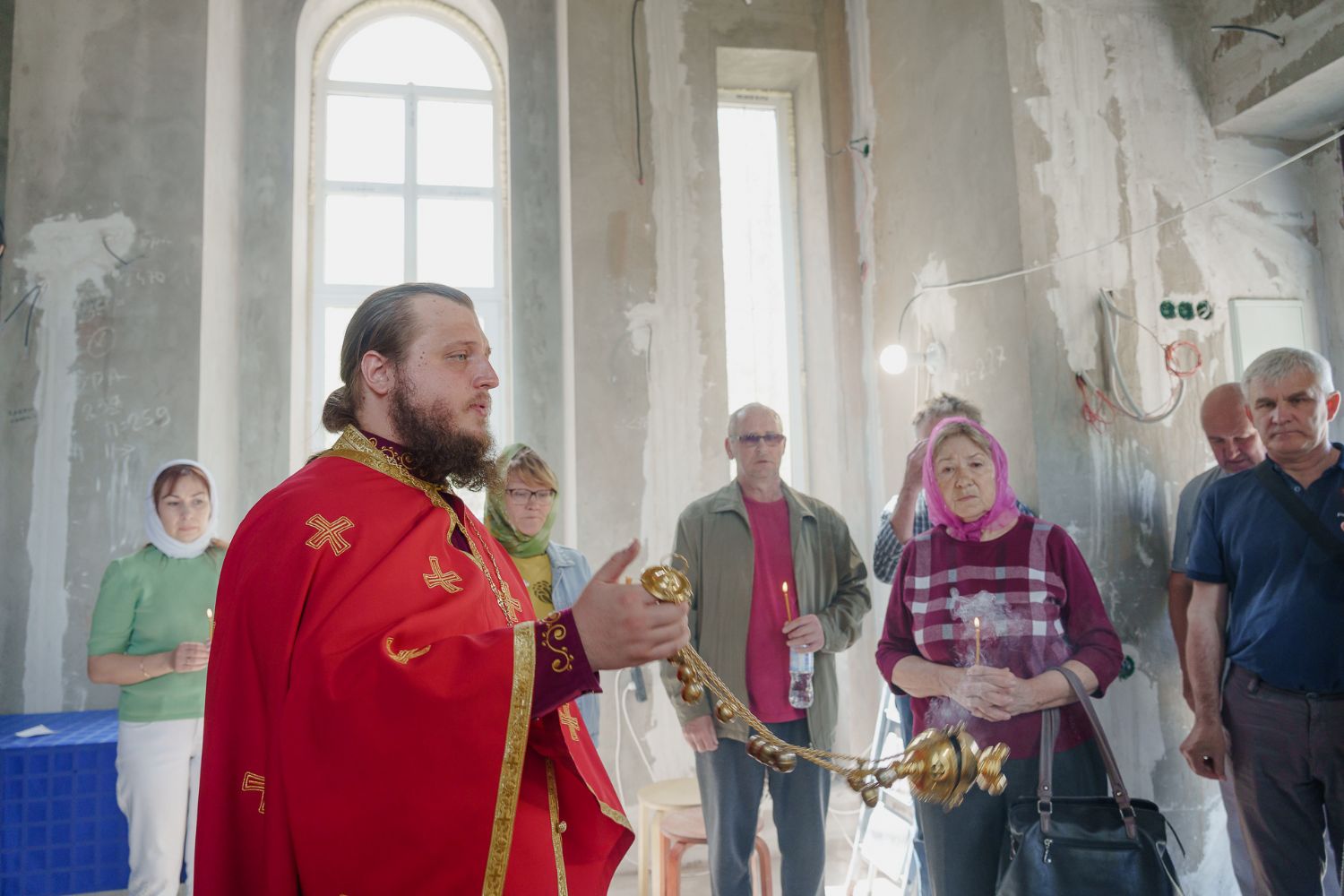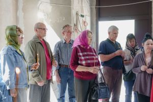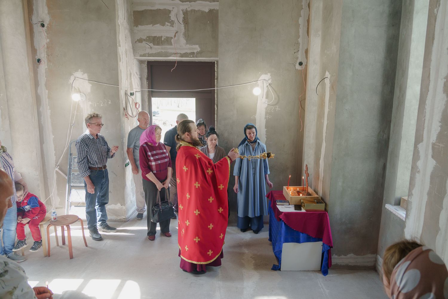 По завершении общей молитвы отец Александр поздравил всех с праздником и преподнём в подарок каждому молящемуся небольшой подарок - карманный церковный календарь с изображением строящегося храма-часовни. Батюшка отметил, что в богослужебной жизни прихода придётся сделать небольшой временный перерыв - ради окончания внутренних отделочных работ. О расписании богослужений в июнн 2024 года будет сообщено дополнительно.