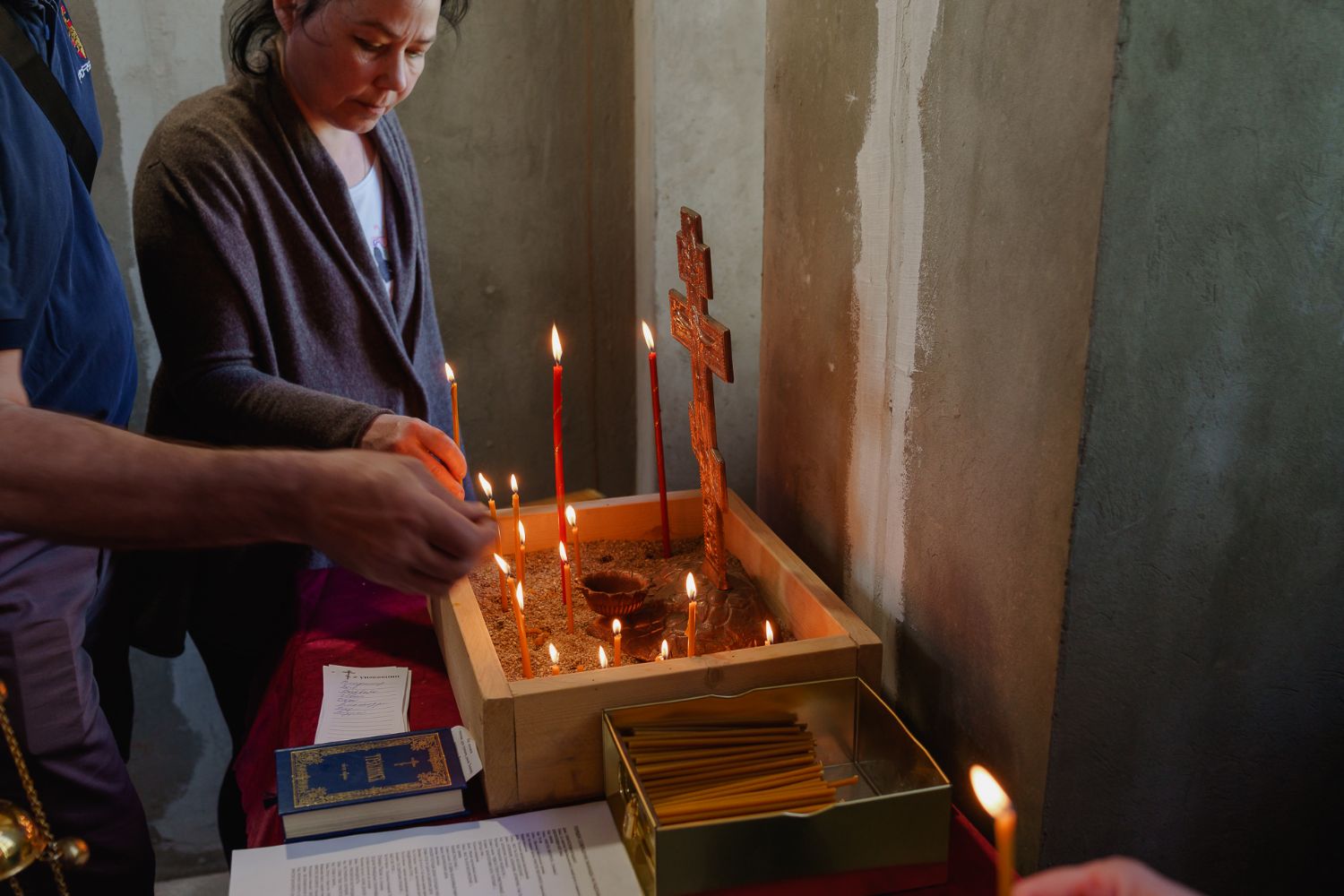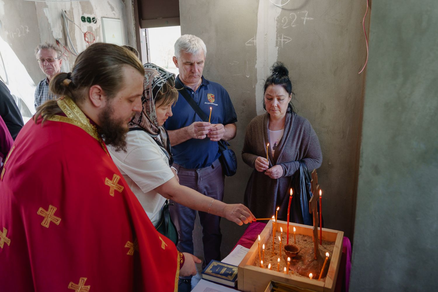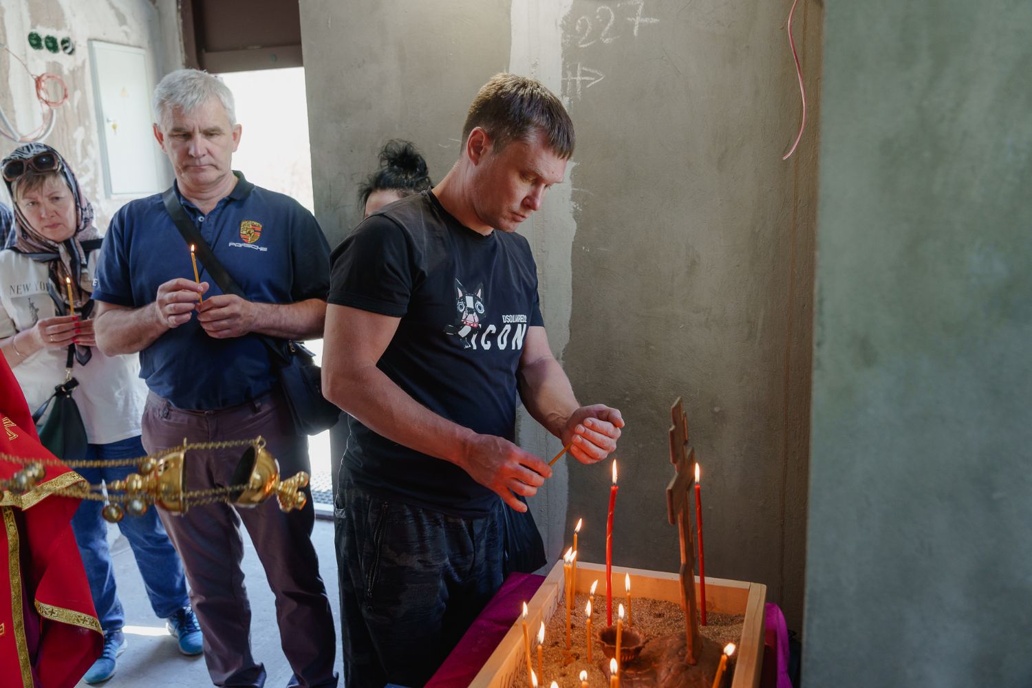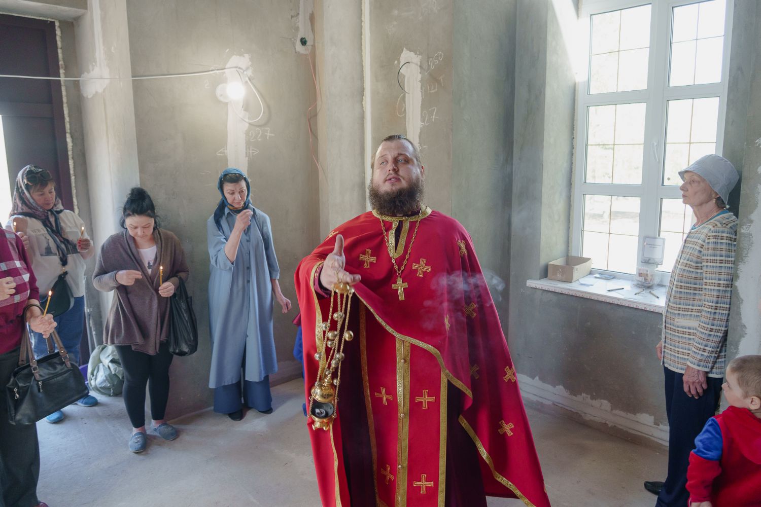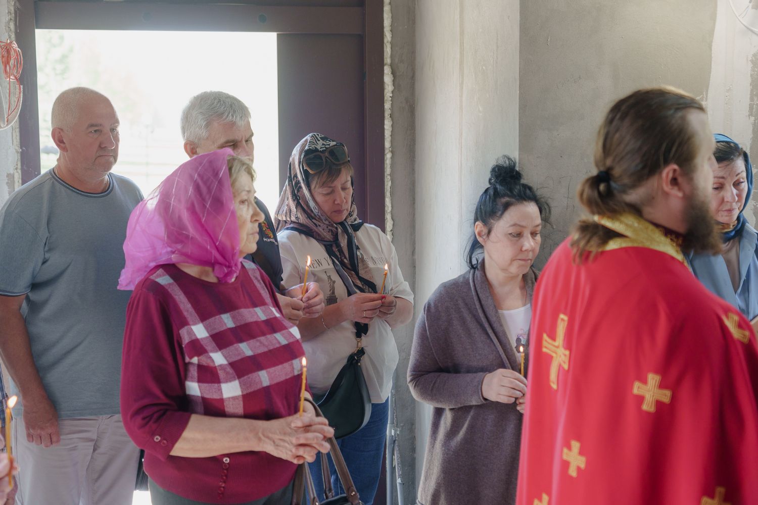 По завершении общей молитвы отец Александр поздравил всех с праздником и преподнём в подарок каждому молящемуся небольшой подарок - карманный церковный календарь с изображением строящегося храма-часовни. Батюшка отметил, что в богослужебной жизни прихода придётся сделать небольшой временный перерыв - ради окончания внутренних отделочных работ. О расписании богослужений в июнн 2024 года будет сообщено дополнительно.