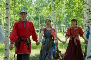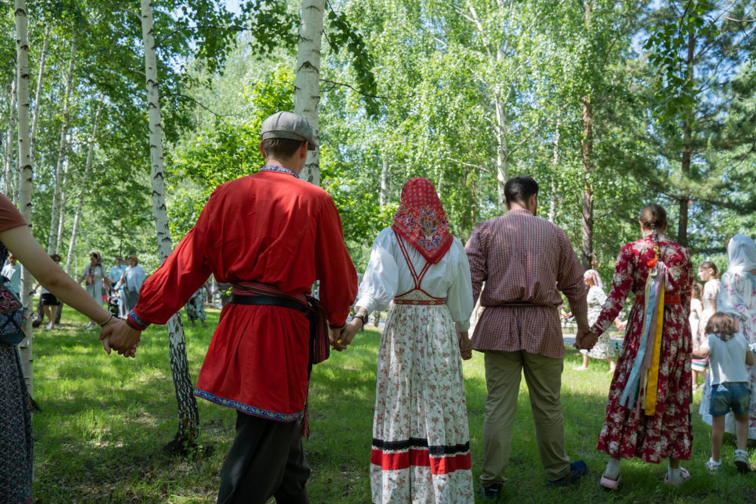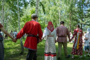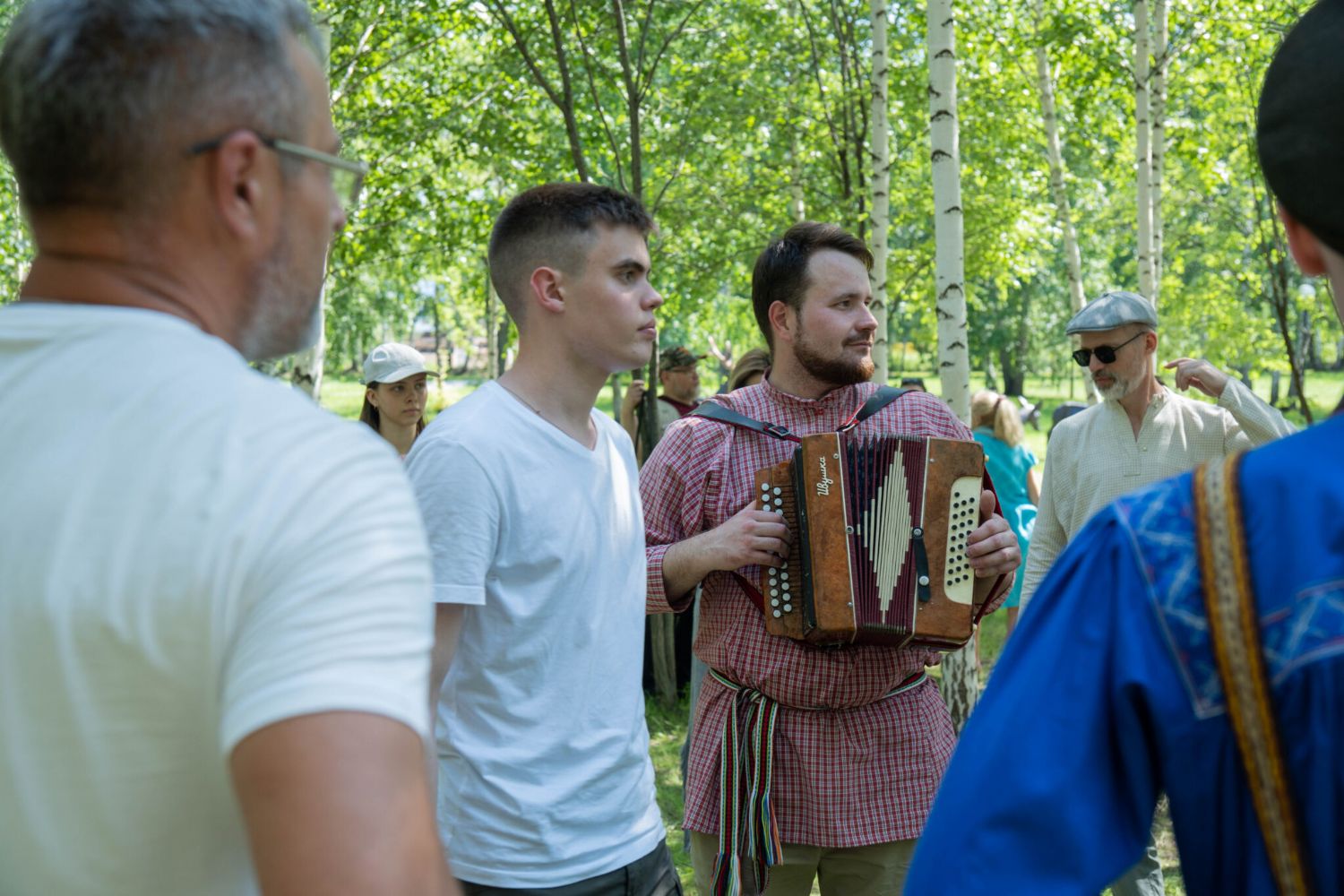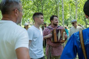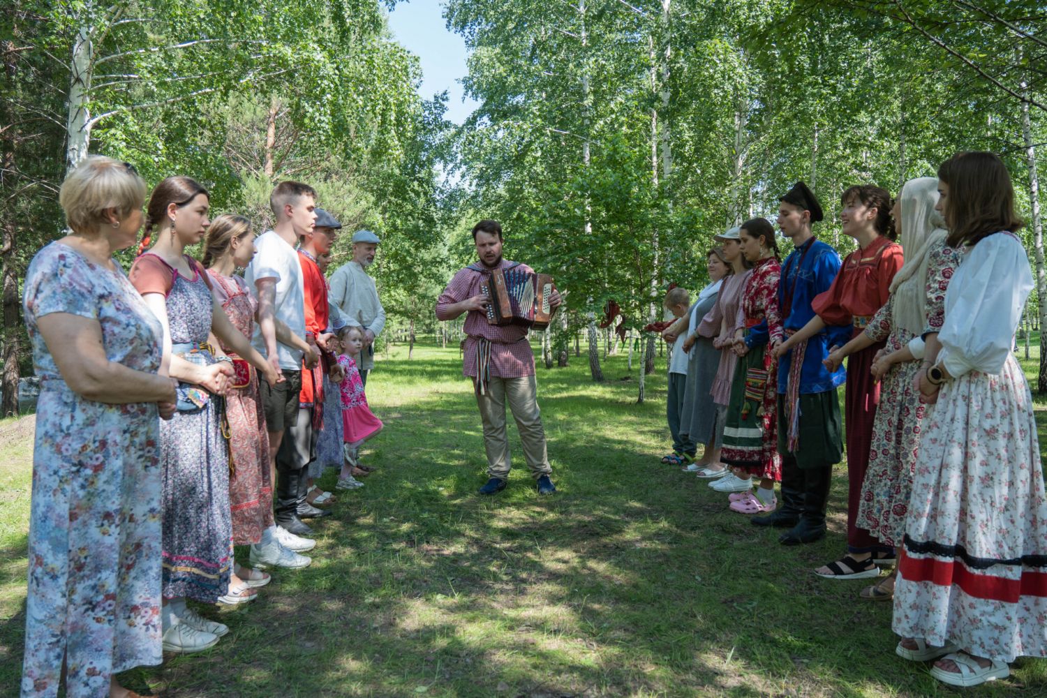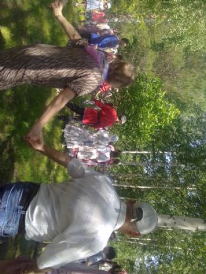 По окончании богослужения верующие поселка Озёрный встречали дорогих гостей - прихожан храма святителя Николая Чудотворца д.п.Мочище вместе с настоятелем иереем Анатолием Рублёвым. Старший сын отца Анатолий Егор Рублёв вместе со своими товарищами организовал на территории большого сквера ЖСК "Ключевой" народные Троицкие гулянья.