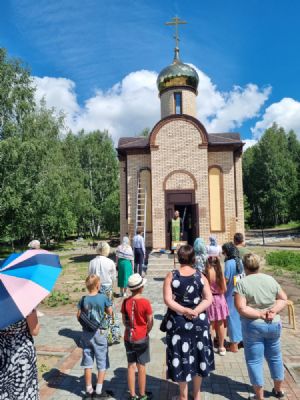 7 июля, накануне Дня Семьи, Любви и Верности, престольного праздника храма-часовни - памяти святых Петра и Февронии Муромских перед строящимся храмовым зданием состоялось праздничное краткое богослужение.