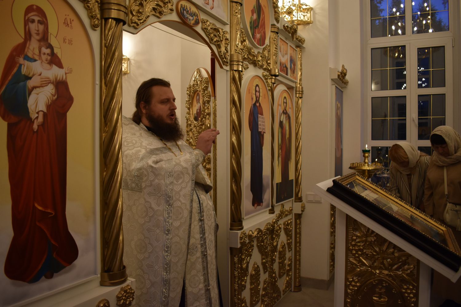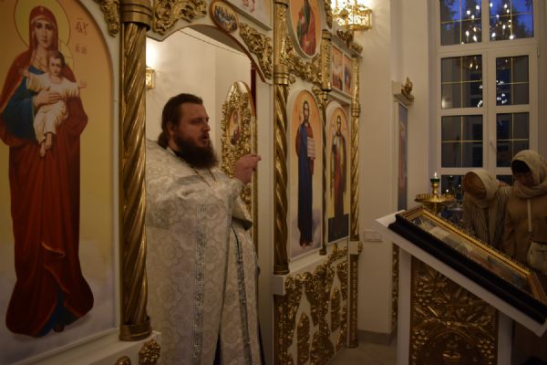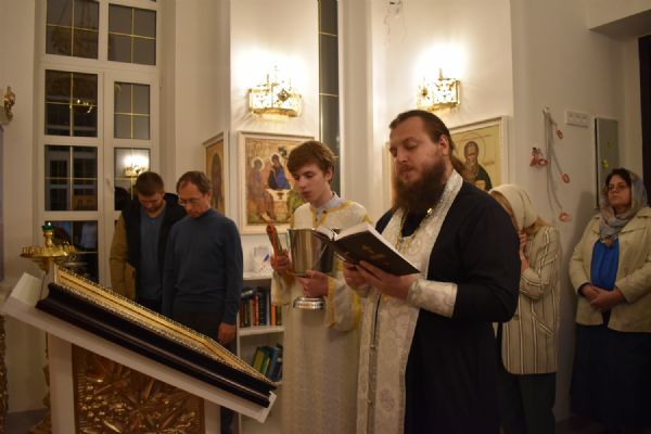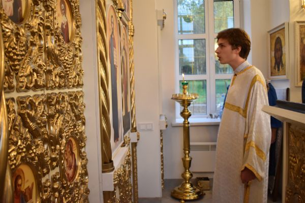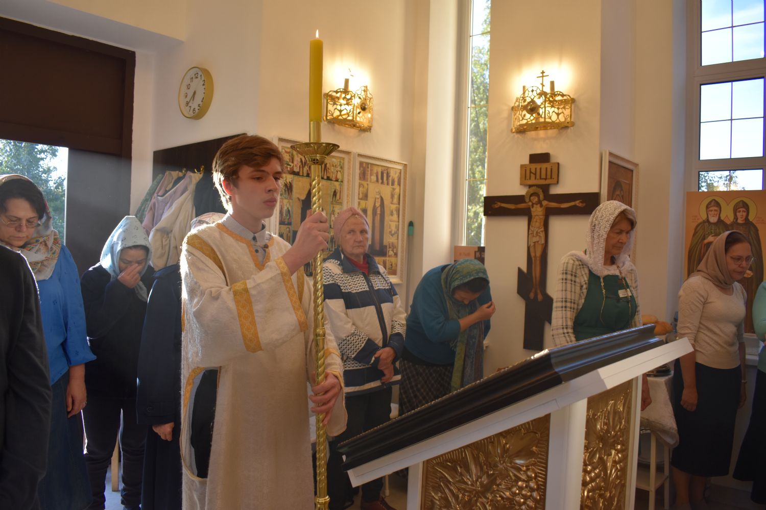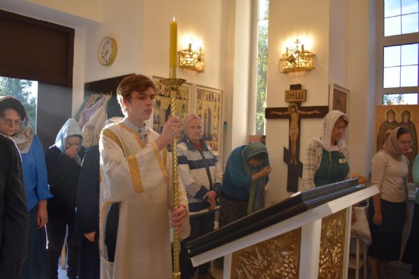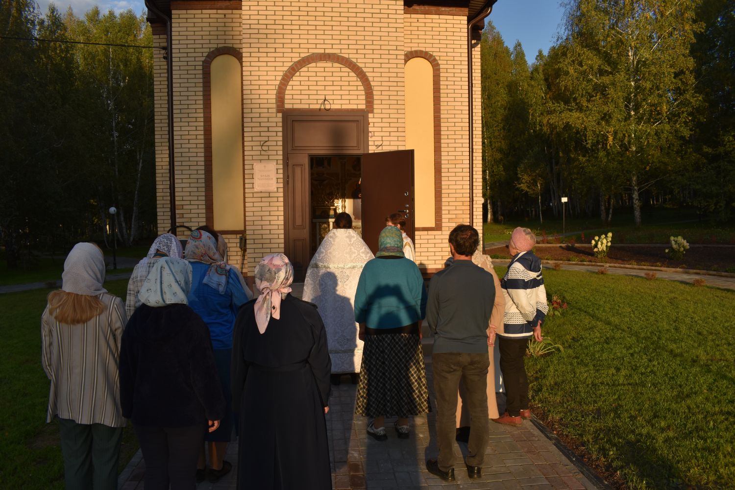 14 сентября, в субботу, в 18 часов состоялось Всенощное бдение с освящением хлебов и вина накануне первого престольного храмового праздника и малого освящения храма-часовни.
