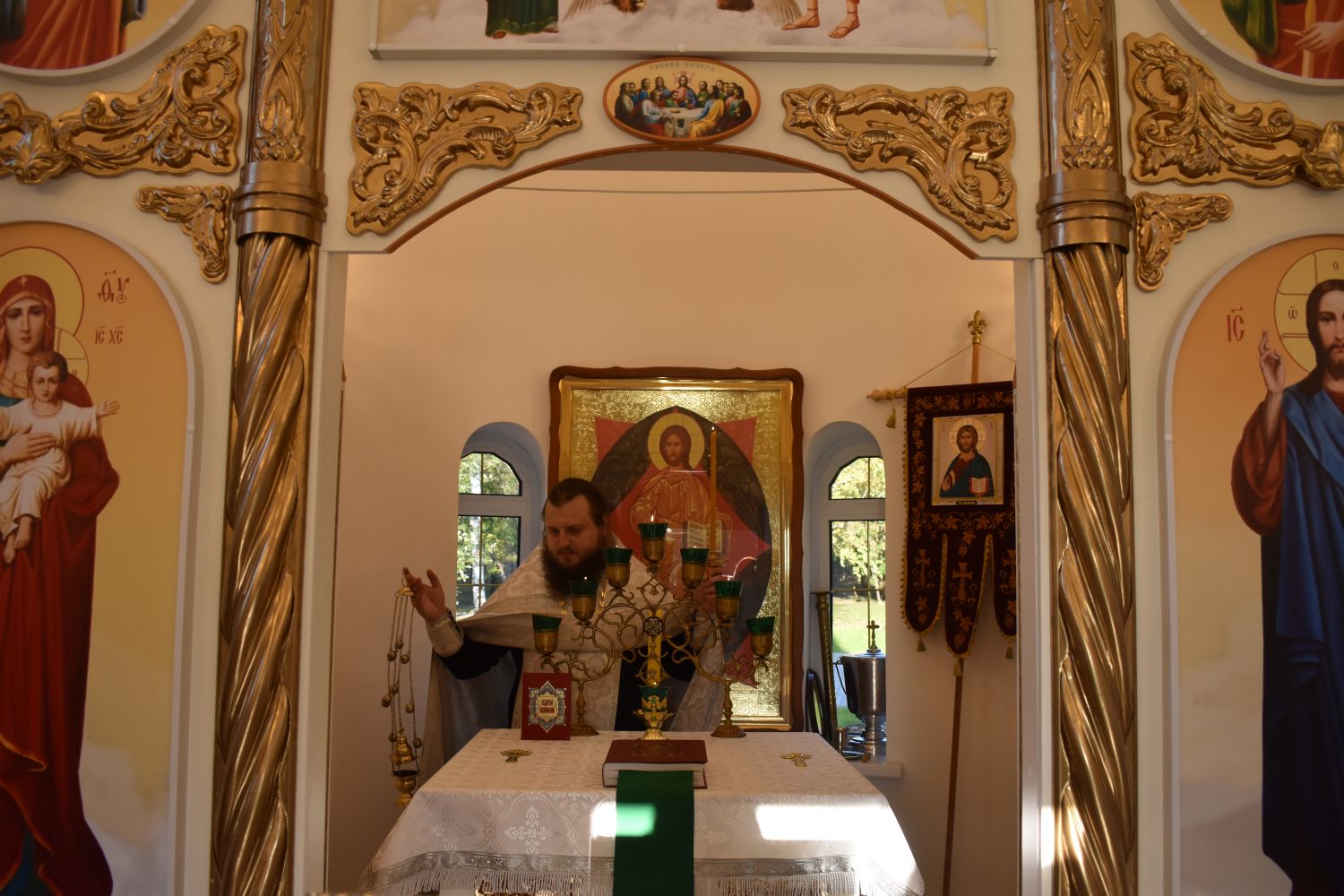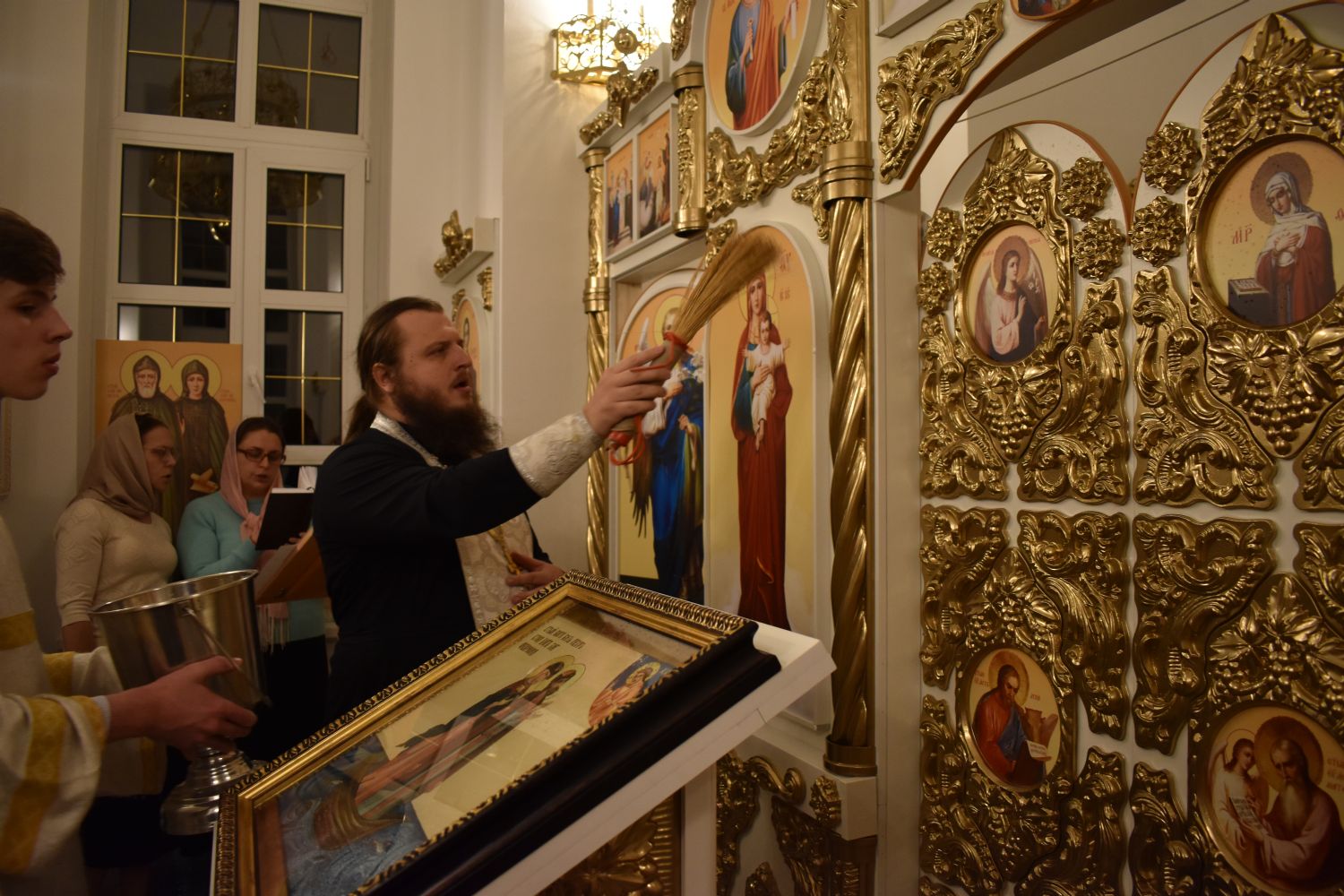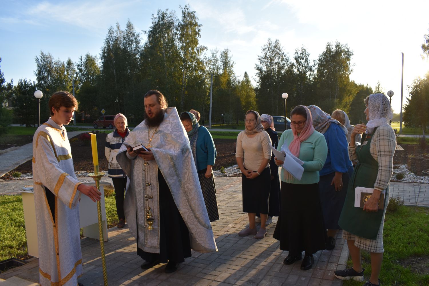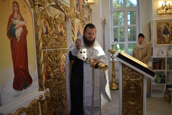 14 сентября, в субботу, в 18 часов состоялось Всенощное бдение с освящением хлебов и вина накануне первого престольного храмового праздника и малого освящения храма-часовни.