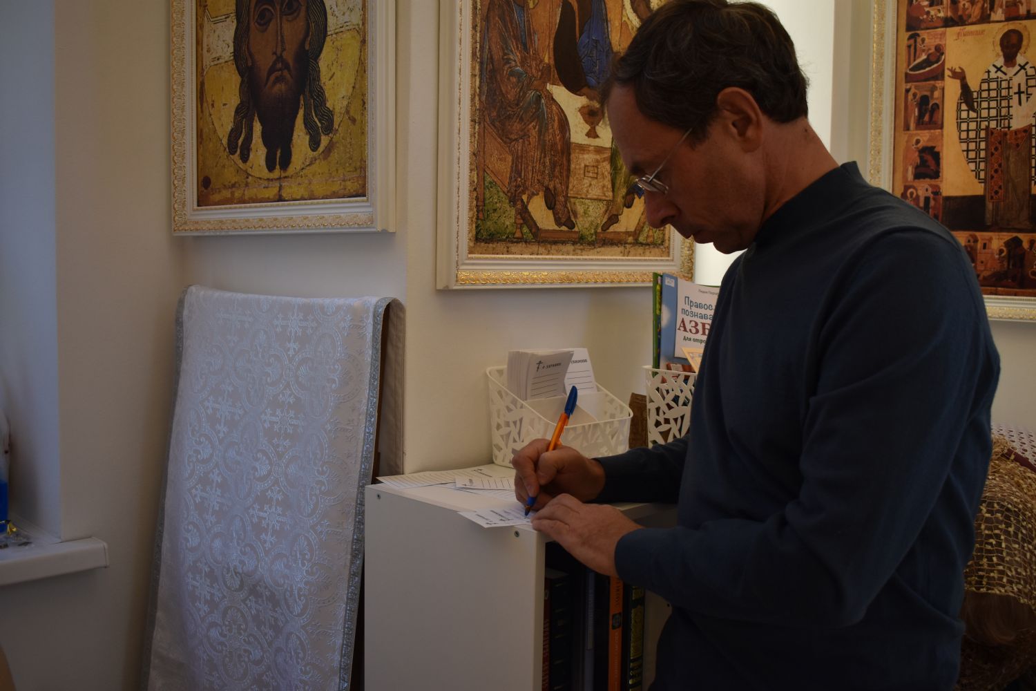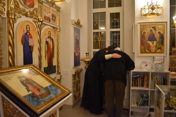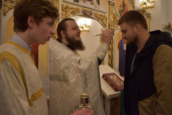 В завершении богослужения отец Александр совершил чин освящения иконостаса. Желаю могли приступить к Таинству Исповеди.