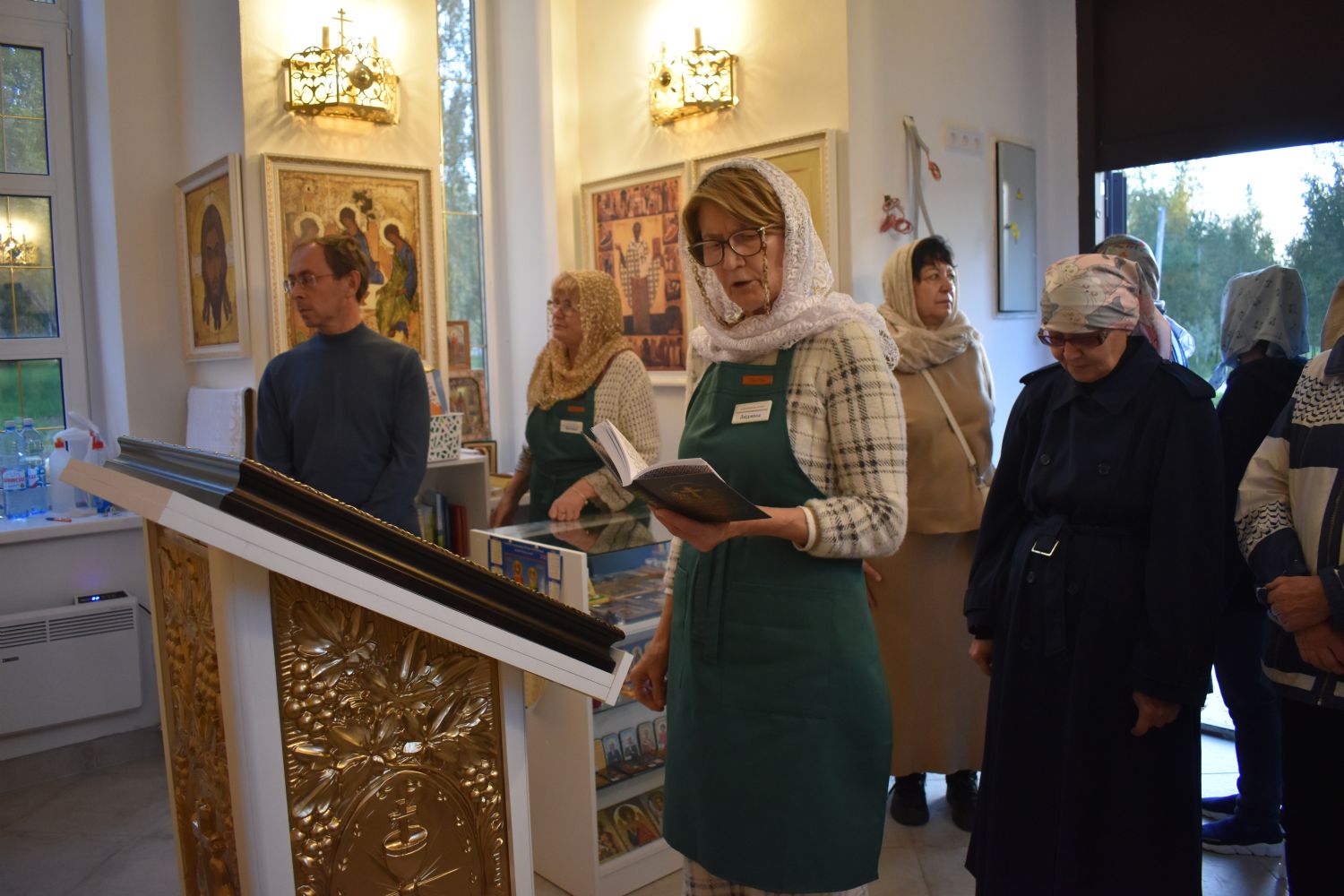 Лития совершалась по древнему чину - с обхождением вокруга храма, подобно традиции, существующей в Александро-Невском соборе г. Новосибирска. Освящённые вино и хлеба выдывались молящимся для вкушения при чтении кафизмы без ограничения в количестве. К помазанию свящённым елеем подошло 20 человек.