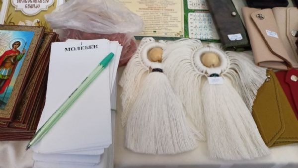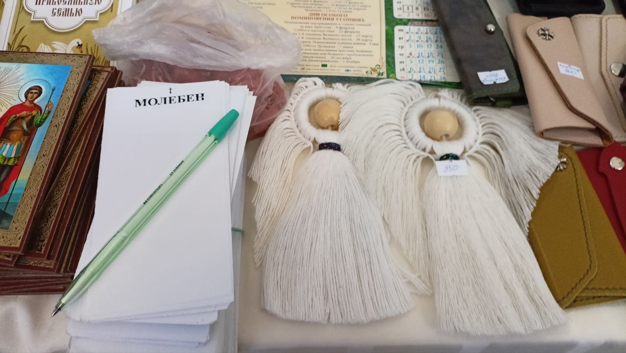 В рамках работы стенда желающим предлагалась к приобретению православная литература, украшения ручной работы и кожаные изделия, выполненные профессиональным кожевником. У верующих новосибирцев была возможность приложиться к нашей храмовой иконе святых покровителей брака и приобрести именной кирпичик, пожертвовав на благоукрашение храма.