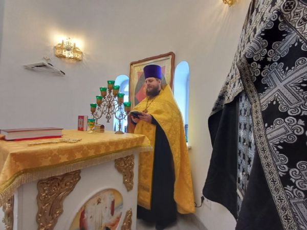 23 февраля, в понедельник, настоятель храма-часовни иерей Александр Сахненко совершил Великое повечерие с чтением первой части Великого покаянного канона, а также литию по усопшим с особым поминовением почивших воинов.