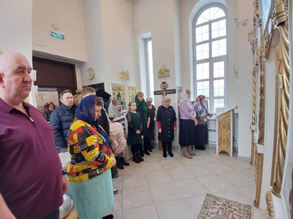 Вечером Прощенного воскресенья настоятель Прихода иерей Александр Сахненко произнёс тематическую проповедь и совершил вечерню за которой священнослужители и храм традиционно переоблачились в темные одежды, а певчая - матушка Елена Федорцова - оставила пение "по-красному" и перешла на постовой распев. По окончании богослужения настоятель прочитал две молитвы перед началом Великого поста и был совершён чин прощения.