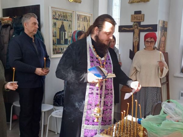 23 февраля, в понедельник, настоятель храма-часовни иерей Александр Сахненко совершил Великое повечерие с чтением первой части Великого покаянного канона, а также литию по усопшим с особым поминовением почивших воинов.