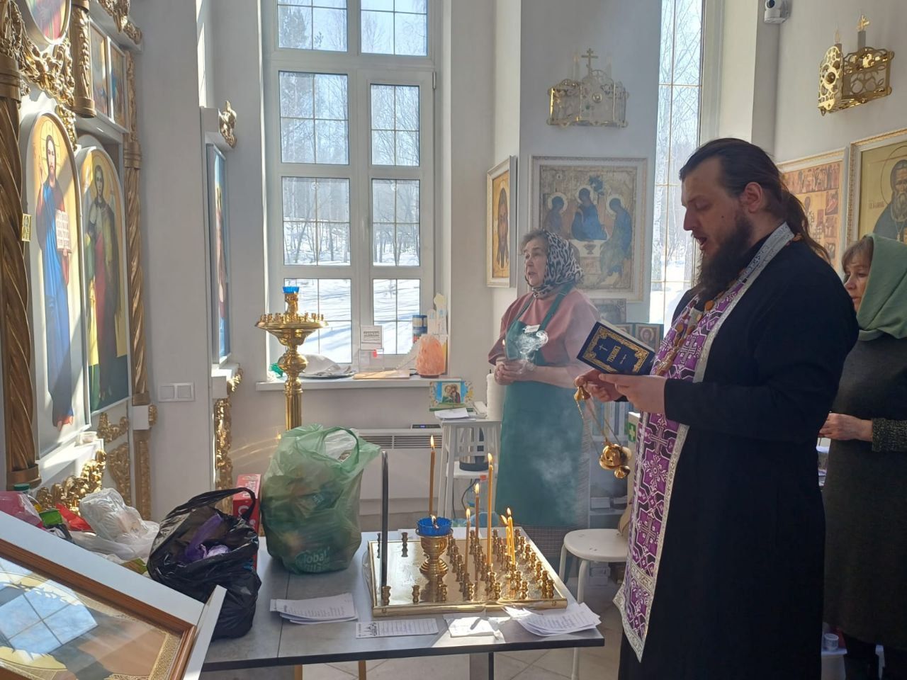 15 марта настоятель Прихода иерей Александр Сахненко совершил молебен Пресвятой Богородице и панихиду по усопшим в храме святых Петра и Февронии пос. Озёрный.