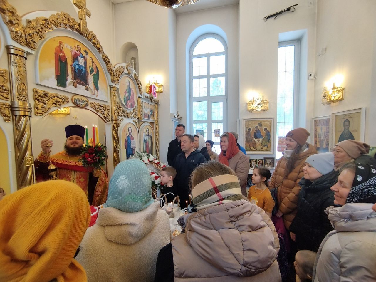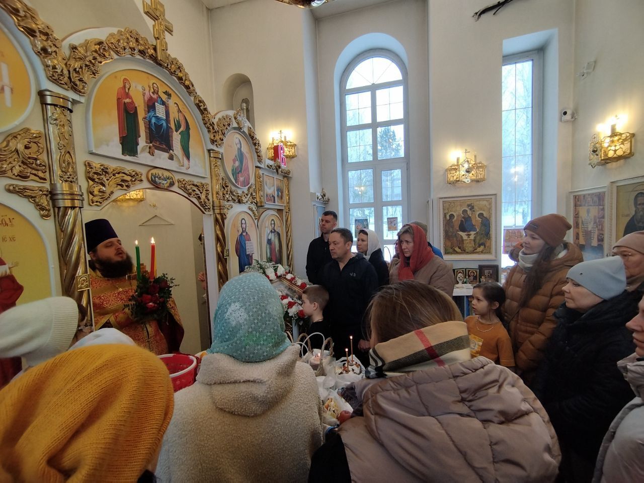 По завершении богослужения отец Александр произнёс тематическую проповедь, а также прочитал Пасхальное послание митрополита Новосибирского и Бердского Никодима.