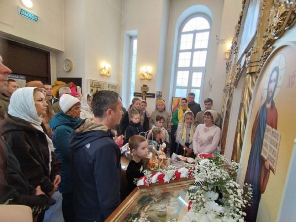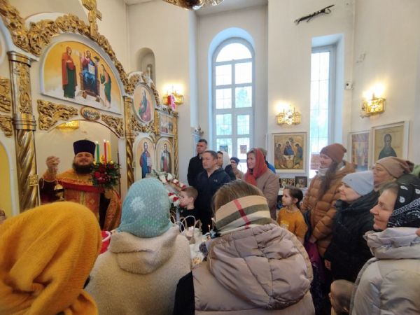Молебен совершил настоятель Прихода иерей Александр Сахненко. Собравшиеся на торжественную молитву прихожане громко подпевали тропарь праздника и ирмосы воскресного канона.
