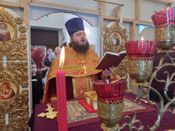 23 февраля, в понедельник, настоятель храма-часовни иерей Александр Сахненко совершил Великое повечерие с чтением первой части Великого покаянного канона, а также литию по усопшим с особым поминовением почивших воинов.