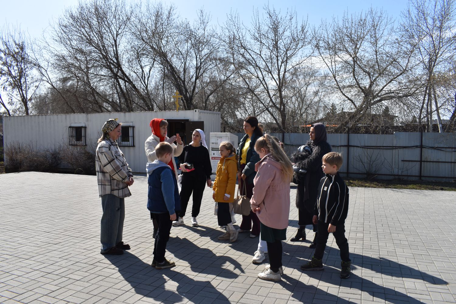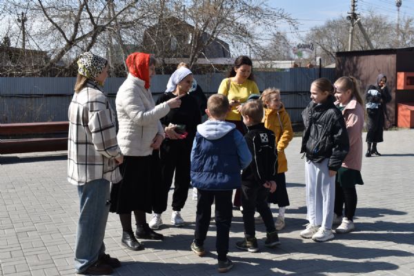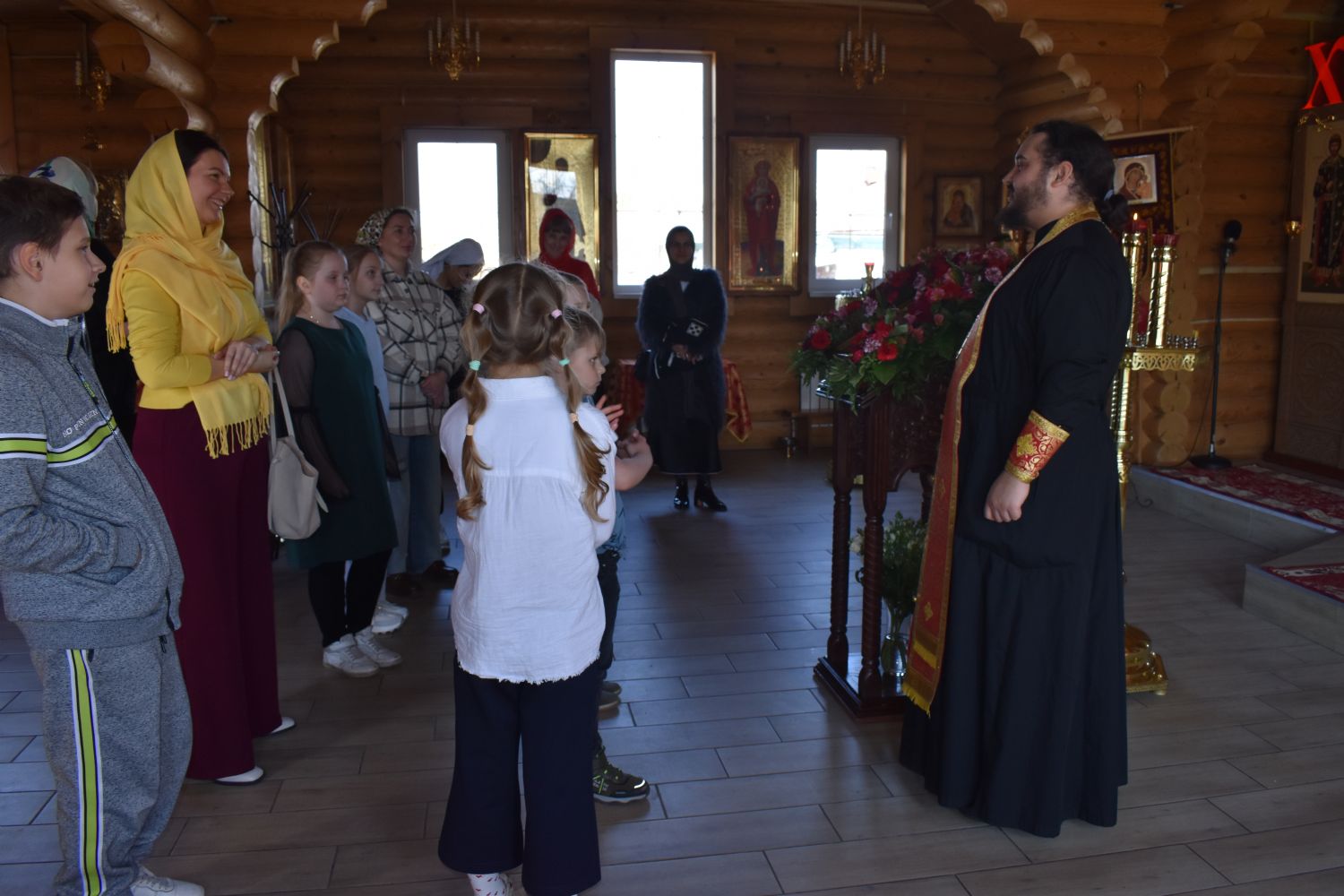 Ребят встретила руководитель Воскресной группы, специалист по приходскому просвещению Георгиевского прихода Елена Викторовна Чебакова, которая провела экскурсию на прихрамовой территории Георгиевского Прихода, напомнила своим воспитанникам особенности храмовой архитектуры и её символикку.