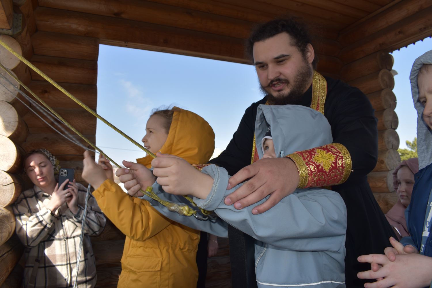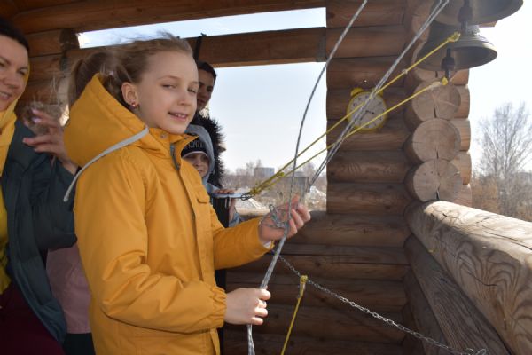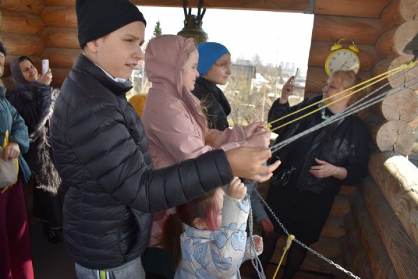 В самом храме ребят встретил штатный священник Георгиевского храма иерей Максим Бутенко. Отец Максим рассказал детям об устройстве православного храма, напомнил о традициях Пасхи и вместе с маленькими гостями поднялся на колокольню, где показал мастер-класс по колокольному звону и предложил попробовать позвонить в колокола каждому. Радость о Пасхе Христовой была слышна на многие метры!