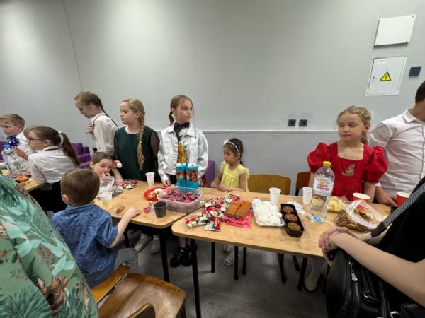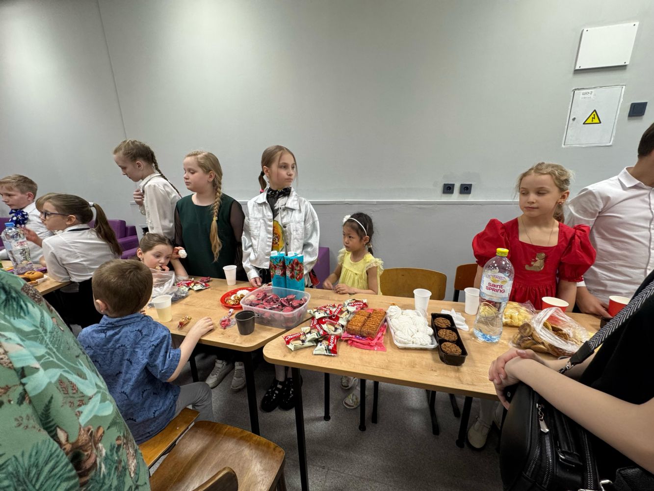 Со своими пасхальными песнопениями и детскими песнями выступил вокальный ансамбль "Божьи коровки" под управлением Ольги Олеговны Матрук, дети пели как хором, так и сольно. Проникновенное пение, яркие наряды и старание детей не оставило равнодушным никого в зале. Со своей пасхальной сценкой "Рядом с нами" выступила и Воскресная группа храма Петра и Февронии под руководством Елены Викторовны Чебаковой и при непосредственном участии родителей. Трогательная игра маленьких актёров, качественно подобранная музыка и костюма, а также тот факт, что чудесную сценку артисты репетировали всего три дня в маленьком храме-часовне, впечатлили всех зрителей. В завершении концертной программы прозвучали пасхальные частушки под собственный аккомпонемент на балалайке в исполнении Марии Путинцевой. По окончании творческих номеров отец Александр подарил каждому находящемуся в зале ребёнку шоколадное пасхальное яйцо и книжку о Светлом Празднике, а взрослым за воспитание деток в вере достались пасхальные шоколадные медали. Батюшка похристосовался с каждым участником мероприятия, после чего дети убежали на соревнования по катанию деревянных яиц, мастер-класс по колокольному звону от пономаря прихода Петра и Февронии Федора Елисеенко, а также приняли участие в праздничном чаепитии, подготовленном руками заботливых родителей.
