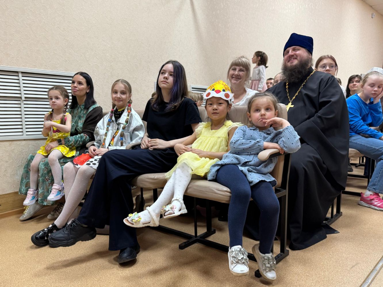 После общей молитвы — громкого и дружного исполнения Пасхального тропаря, прозвучало приветственное слово настоятеля храма-часовни Петра и Февронии иерея Александра Сахненко. Отец Александр рассказал собравшимся о празднике Святой Пасхи, как о Победе Христа над смертью, вспомнил вместе с юными зрителями и их родителями историю, обычаи и традиции праздника. Конечно, проходя в преддверии Великой Победы в Великой Отечественной войны миссионерский концерт был посвящён и памяти тех победных событий, пришедшихся также на Светлую Пасхальную Седмицу.
