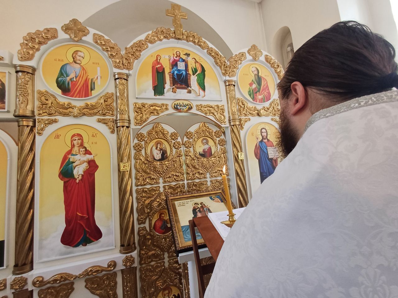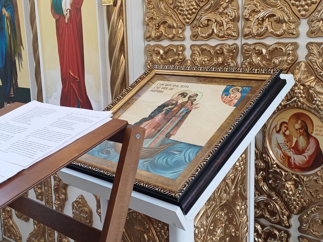 Молебное пение совершил настоятель Прихода иерей Александр Сахненко. Акафист святым покровителям храма был пропет всенародно.