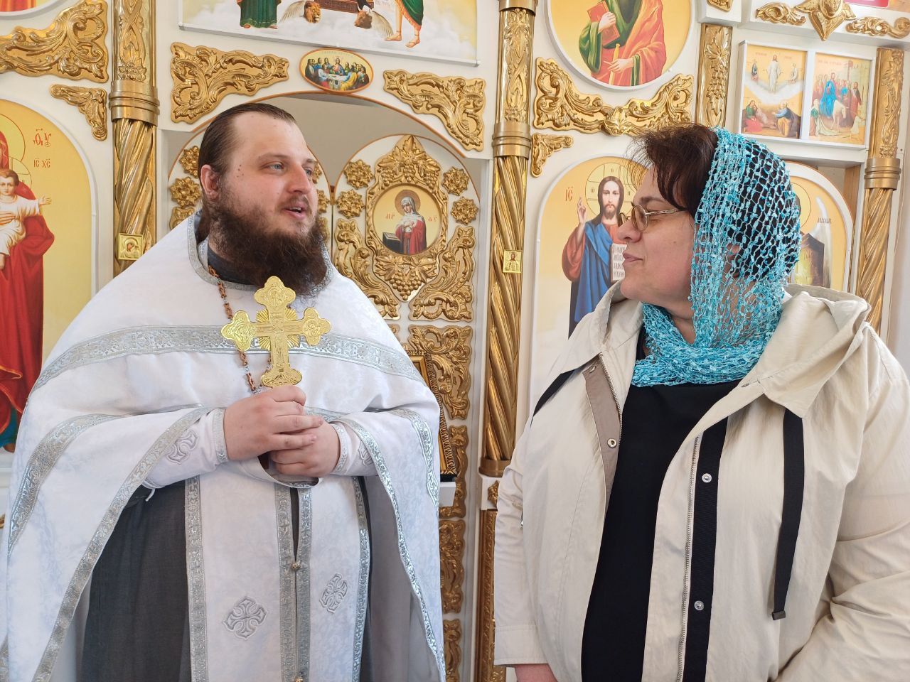 По завершении богослужения отец Александр поздравил прихожанку храма-часовни Потеряеву Ларису Владимировну с юбилейным Днём рождения и преподнёс от лица Прихода памятную икону святых Петра и Февронии Муромских.
