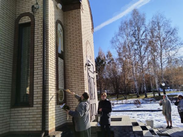 25 октября в храме-часовне святых Петра и Февронии Муромских п. Озёрный был совершён водосвятный молебен и чин освящения нахрамовых икон покровителей нашего брака. За богослужением молились церковный староста, прихожане и гости прихода.