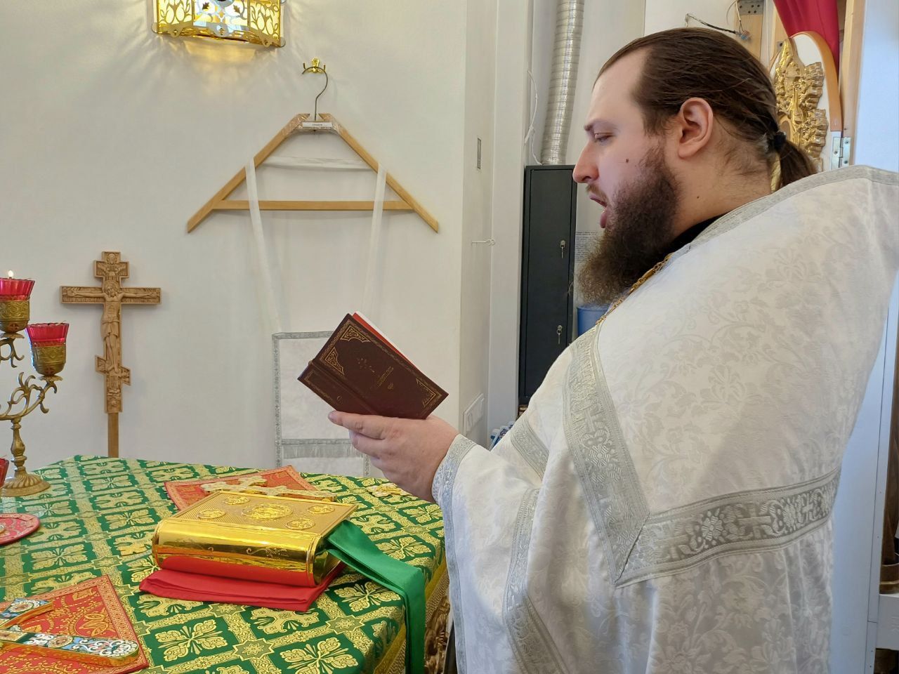 23 февраля, в понедельник, настоятель храма-часовни иерей Александр Сахненко совершил Великое повечерие с чтением первой части Великого покаянного канона, а также литию по усопшим с особым поминовением почивших воинов.