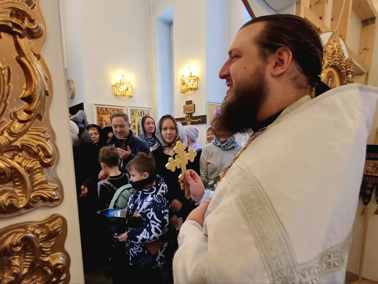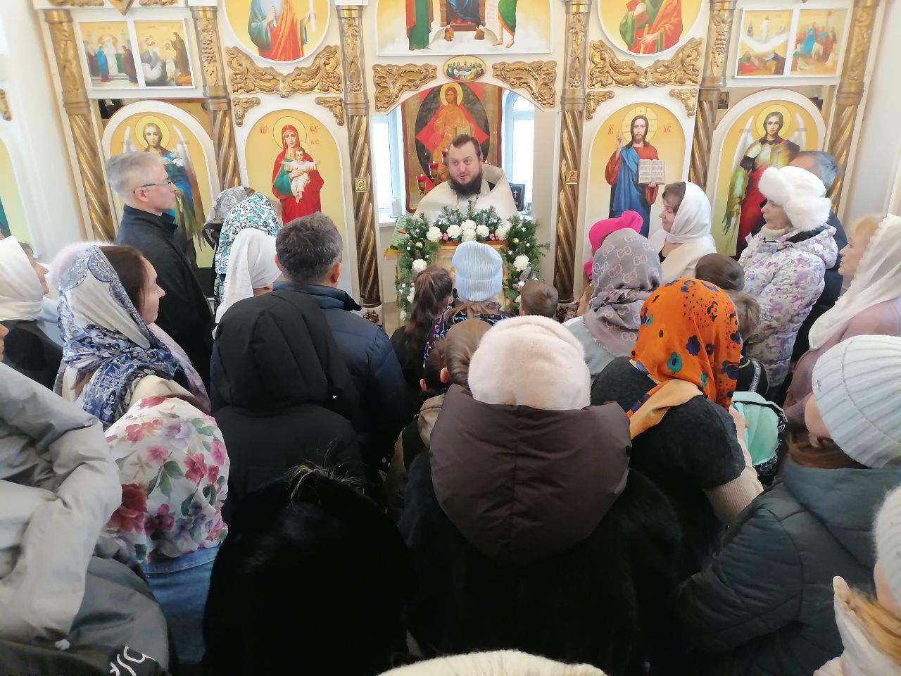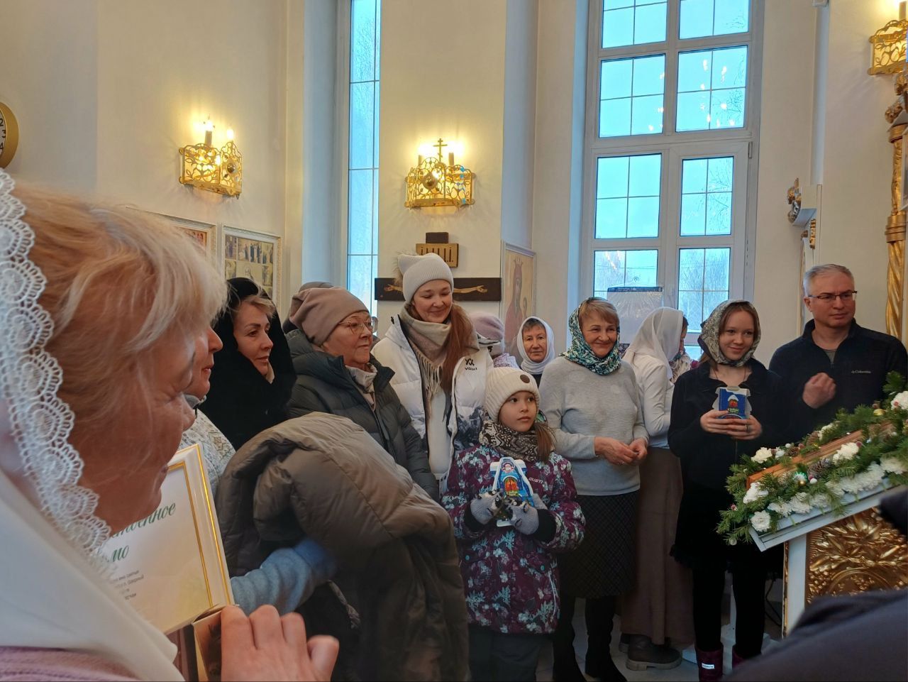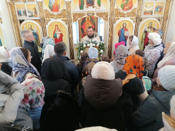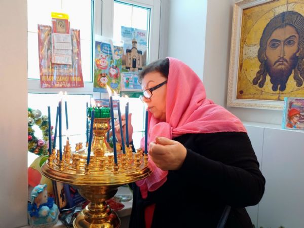 7 января настоятель Прихода иерей Александр Сахненко совершил в храме-часовне праздничный молебен. За богослужением молилось 35 человек. Каждый молящийся получил памятный подарок, а дети сладкие подарки.