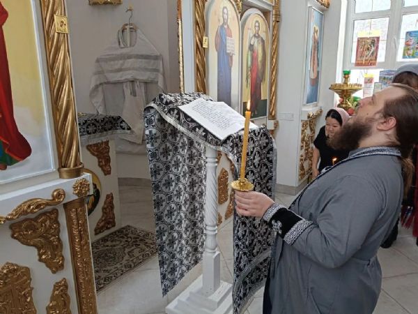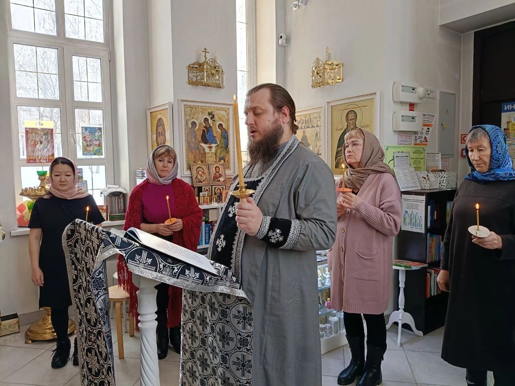 23 февраля, в понедельник, настоятель храма-часовни иерей Александр Сахненко совершил Великое повечерие с чтением первой части Великого покаянного канона, а также литию по усопшим с особым поминовением почивших воинов.