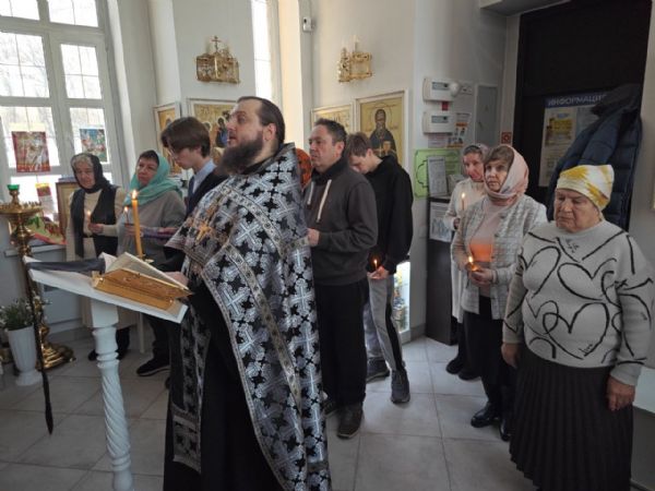 1 марта вечером в храме-часовне Петра и Февронии настоятель Прихода иерей Александр Сахненко совершил Пассию или Вечерню с чтением Акафиста Страстям Христовым и Страстным Евангелием от Матфея. Пел клиросный ансамбль.