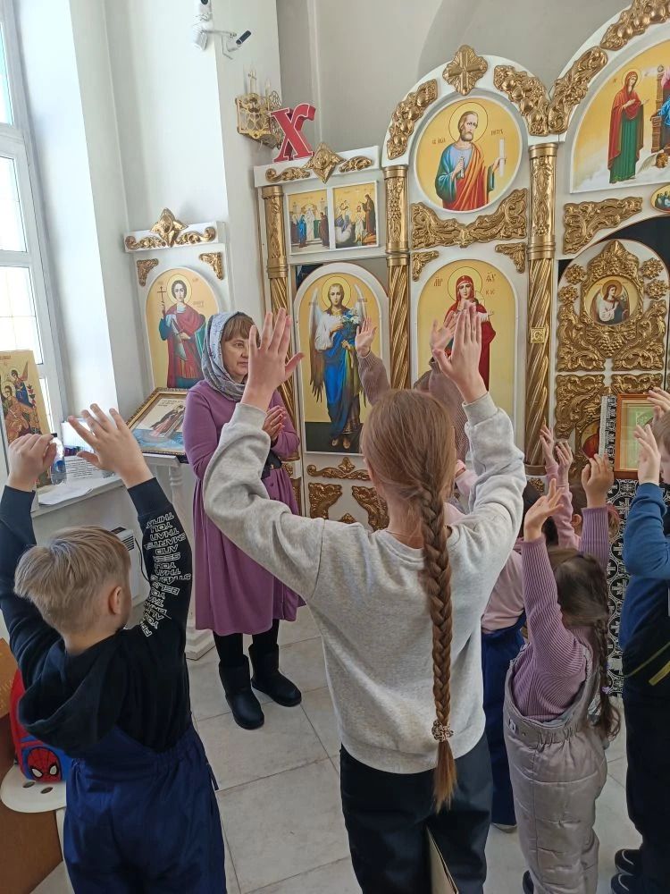 На протяжении всего занятия дети отгадывали загадки о православных книгах, повторили о чем говорится в Ветхом Завете и Новом Завете ( Евангелие), повторили, что Господь делал, когда вышел на проповедь к людям, прошли новые темы: Господь Иисус Христос и искушения во время его 40- дневного поста. Как нам бороться со своими искушениями по Его примеру. Поговорили о Крестопоклонной неделе, что значит Крест для христианина.
