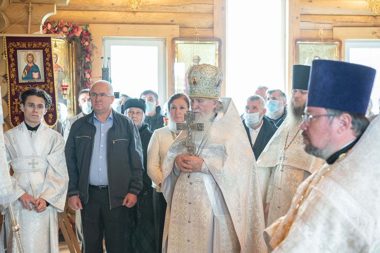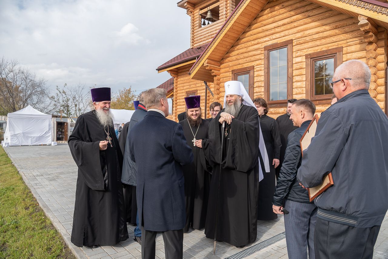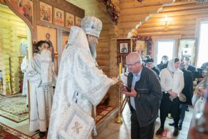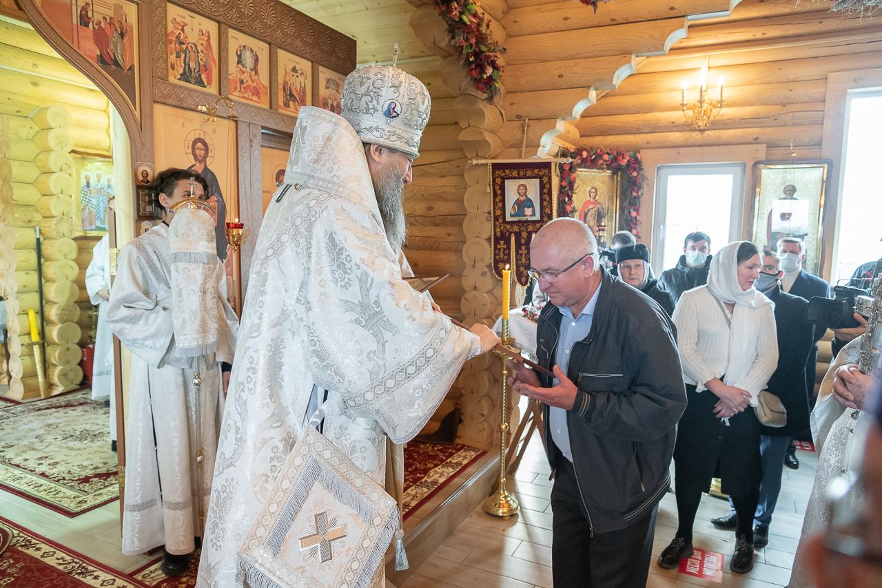 Торжественное богослужение возглавил Правящий Архиерей Новосибирской епархии митрополит Новосибирский и Бердский Никодим. За богослужением молился инициатор строительства храма-часовни во имя святых Петра и Февронии Муромских Дмитрий Викторович Коробов.