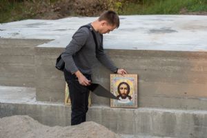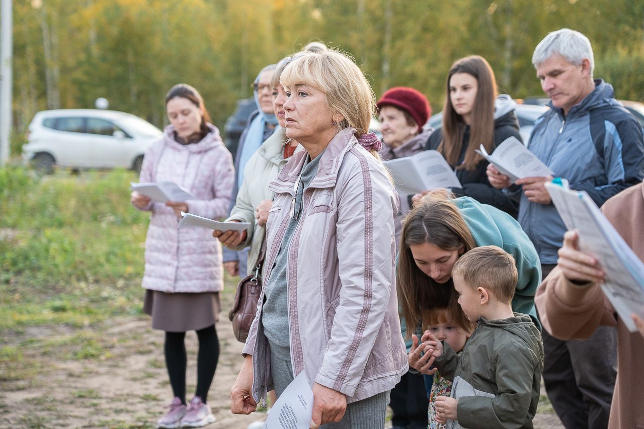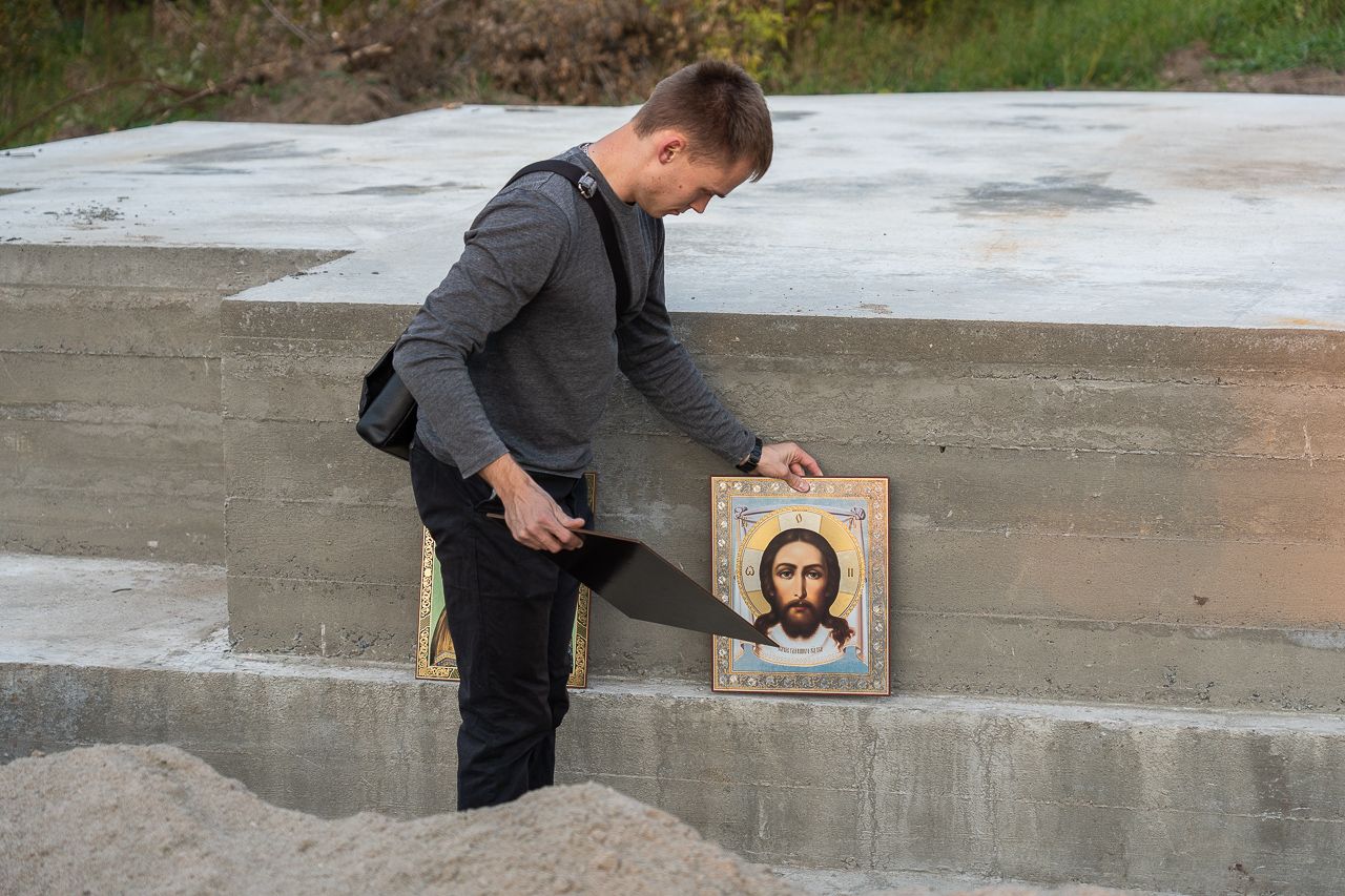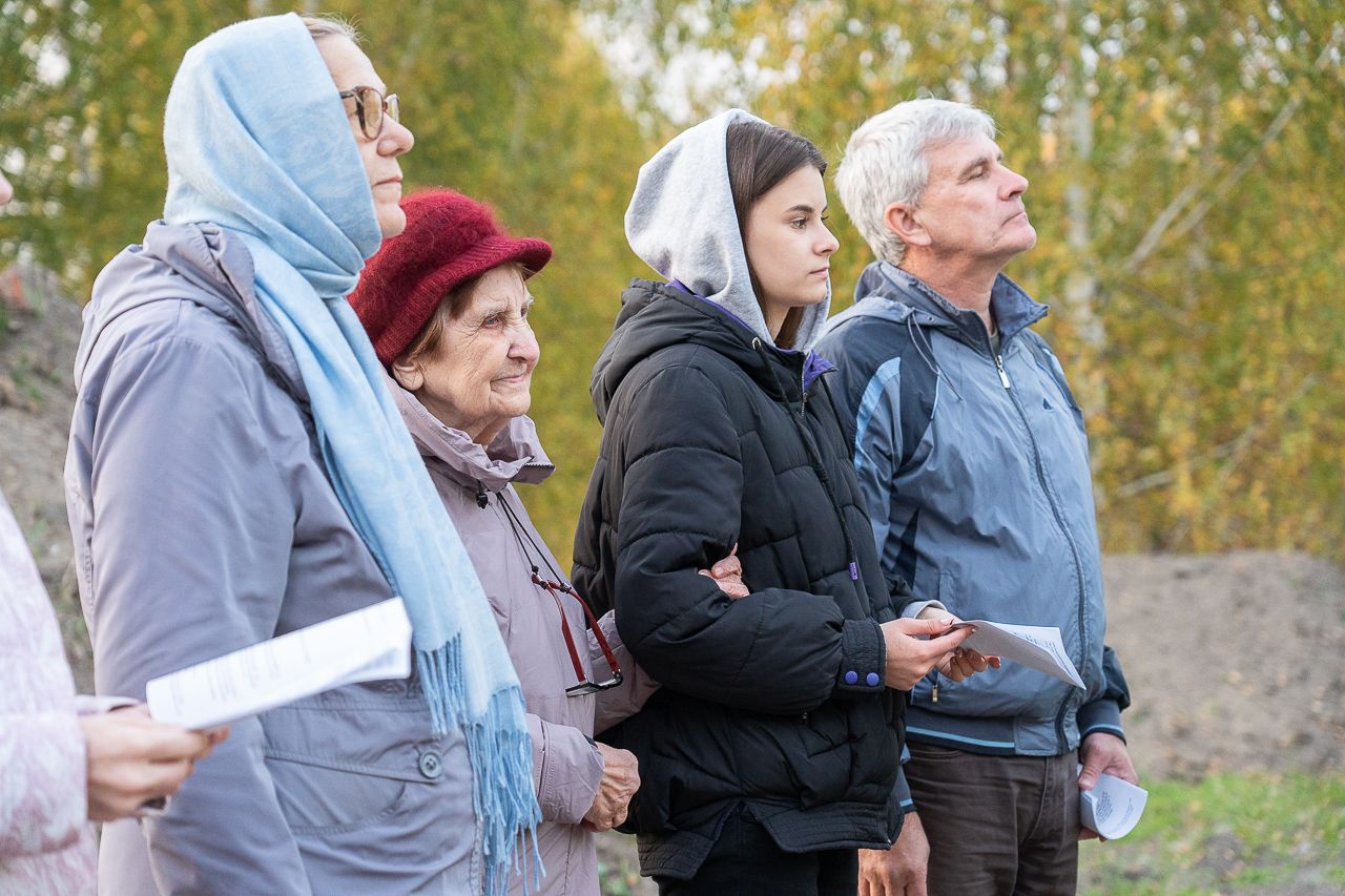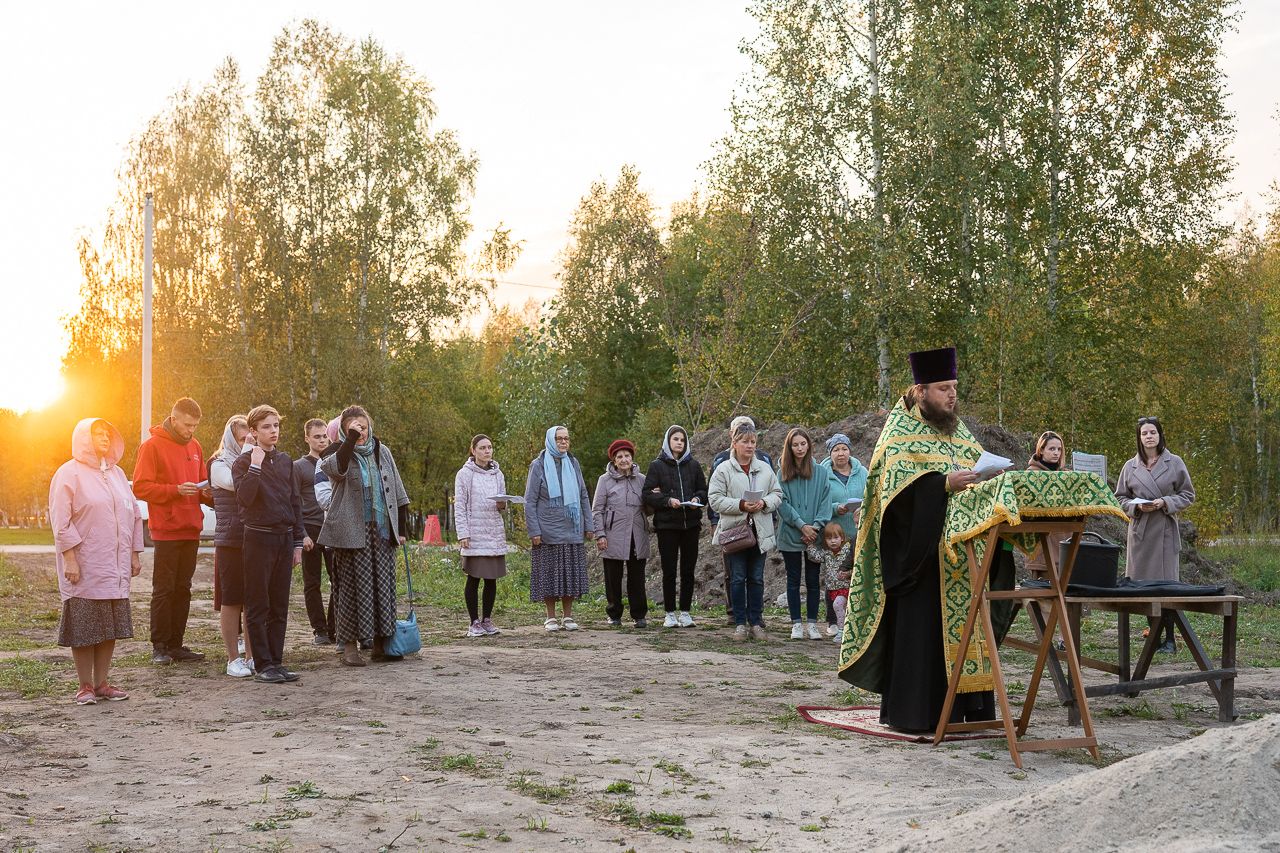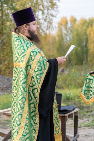 Первый молебен на месте строительства