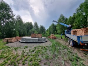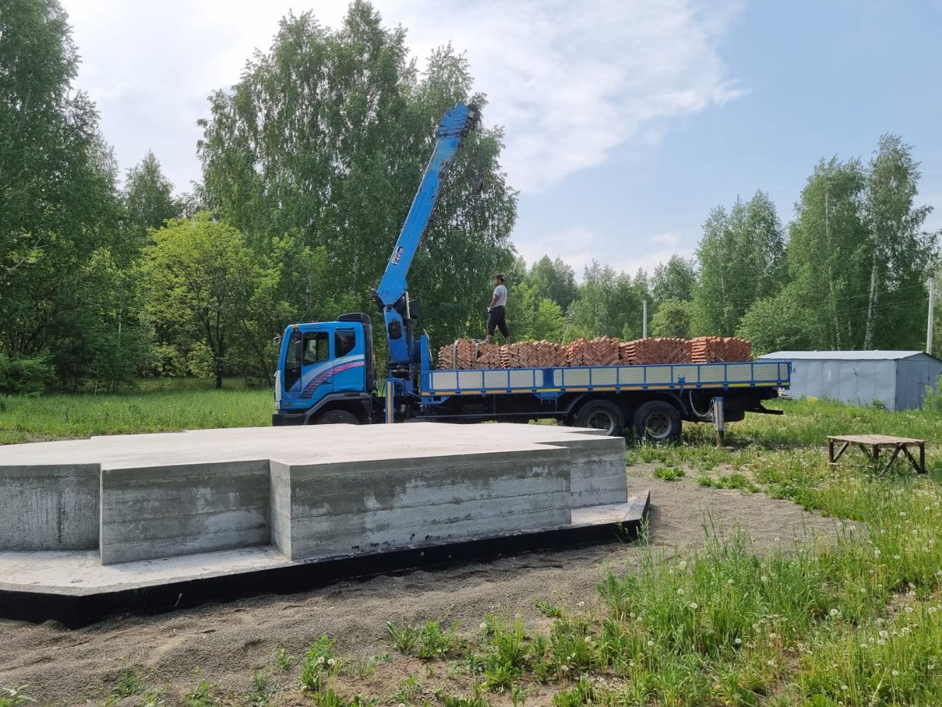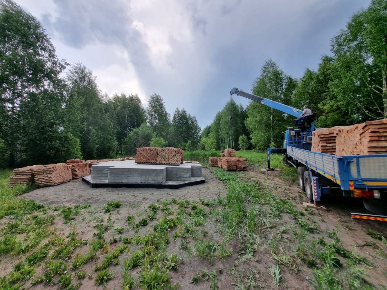 С началом лета 2023 года продолжились строительные работы будущего храма-часовни. На днях была закуплена и завезена на строительную площадку первая партия кирпичей для возведения храмовых стен.