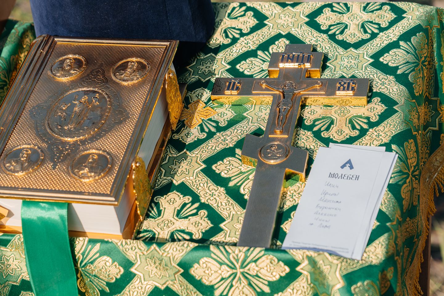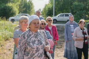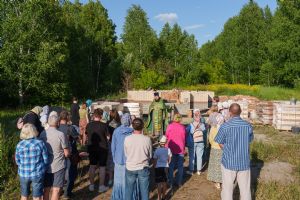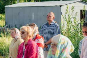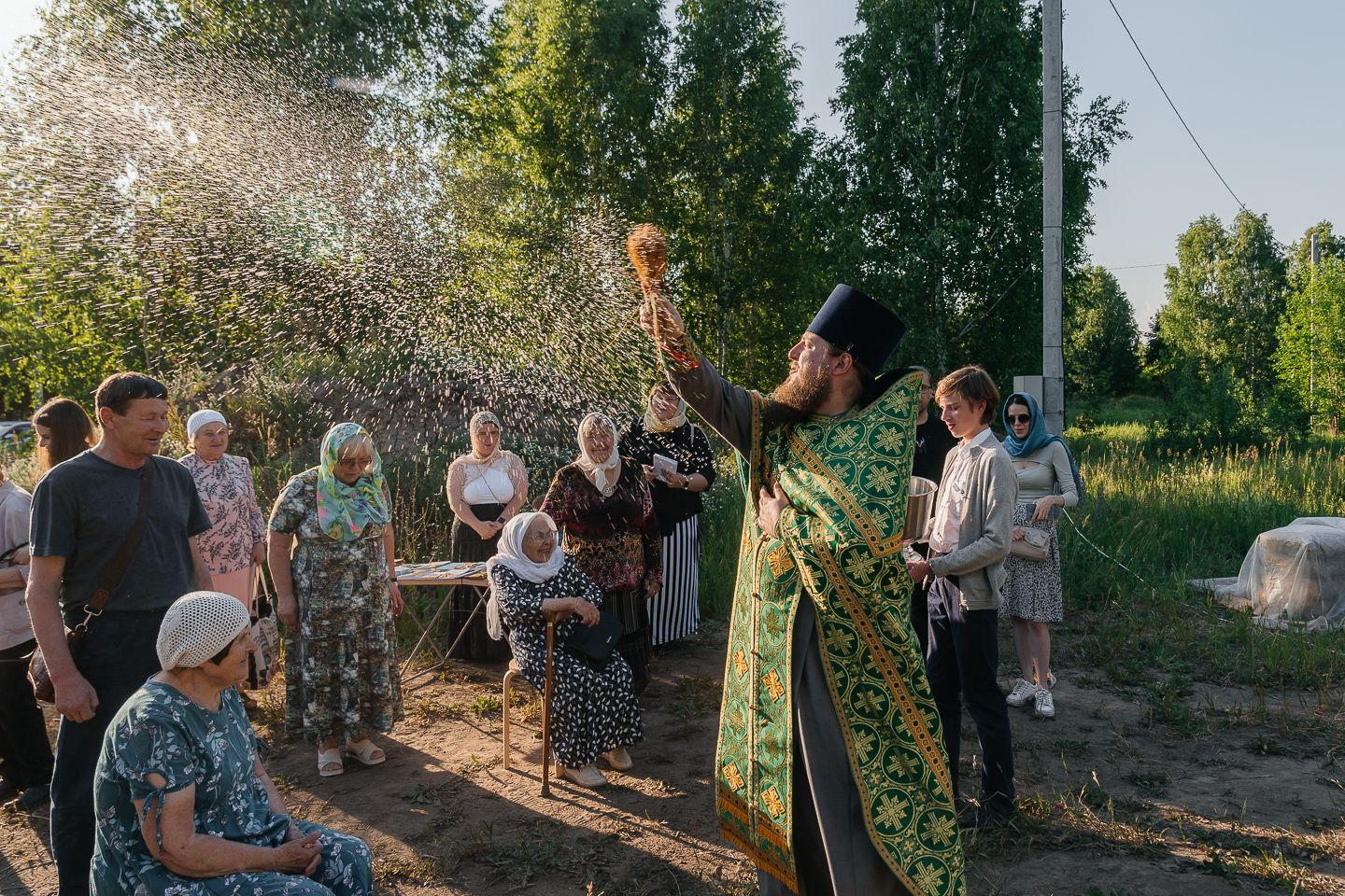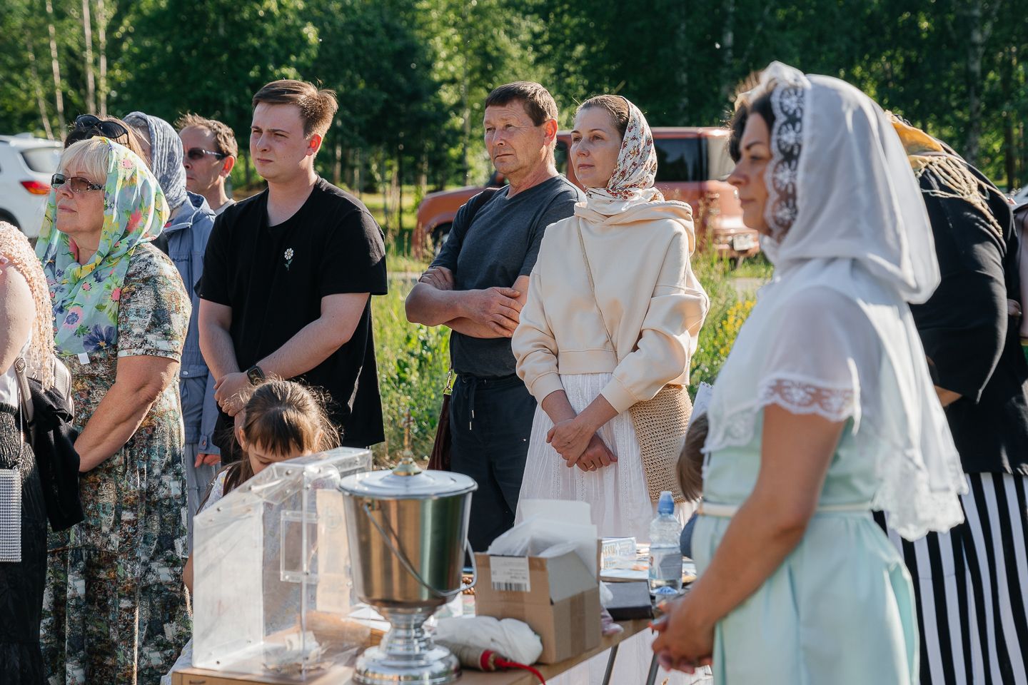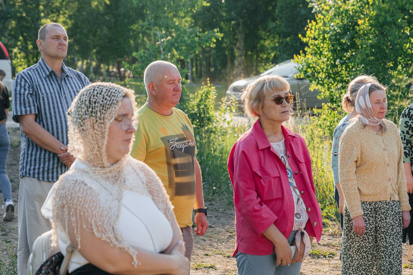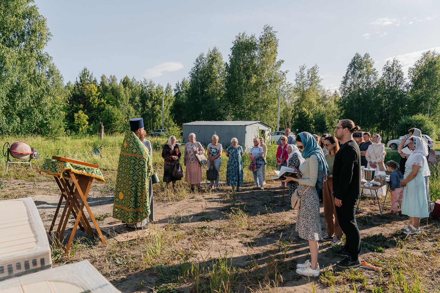 Отец Александр окропил святой водой кирпичи перед дальнейшей работой строителей по возведению стен храмового здания, а также после краткого молебна святым покровителям храма окропил водой каждого присутствующего на молебне молитвенника. Батюшка передал собравшимся слова приветствия от Правящего Архиерея, а также сказал краткую проповедь, призвав неустанно жертвовать на строительство храма и помогать в строительстве любым возможным способом.