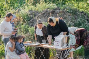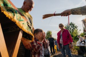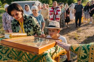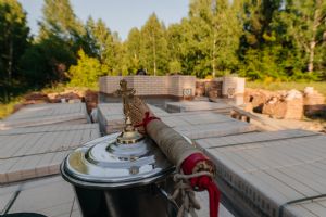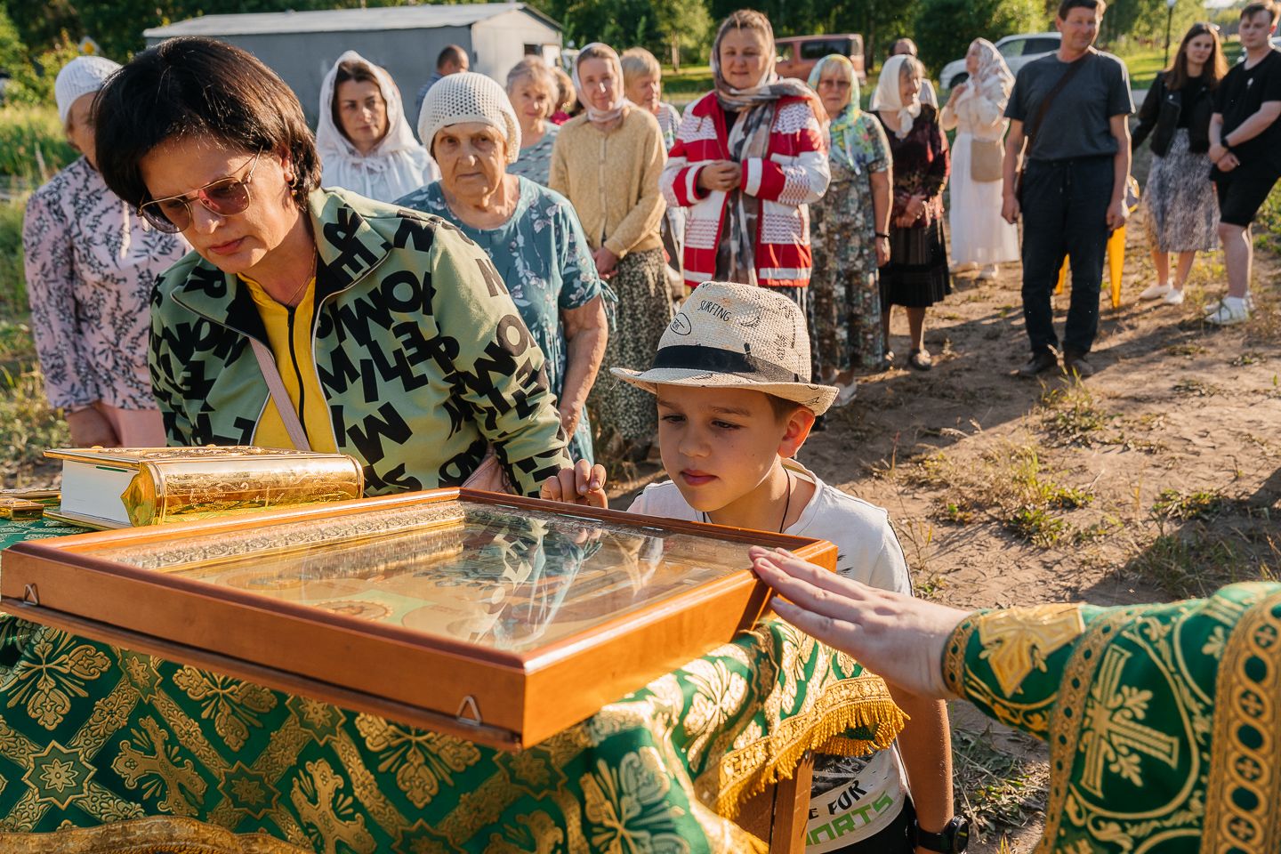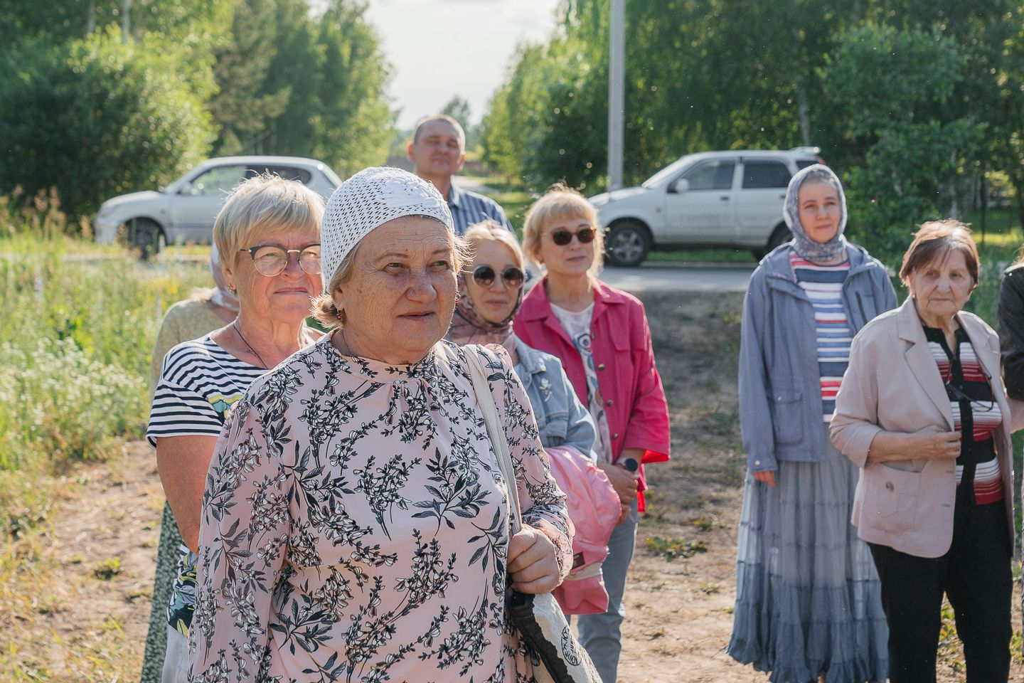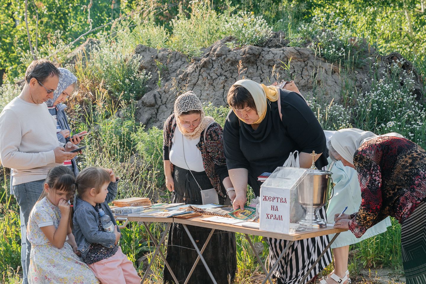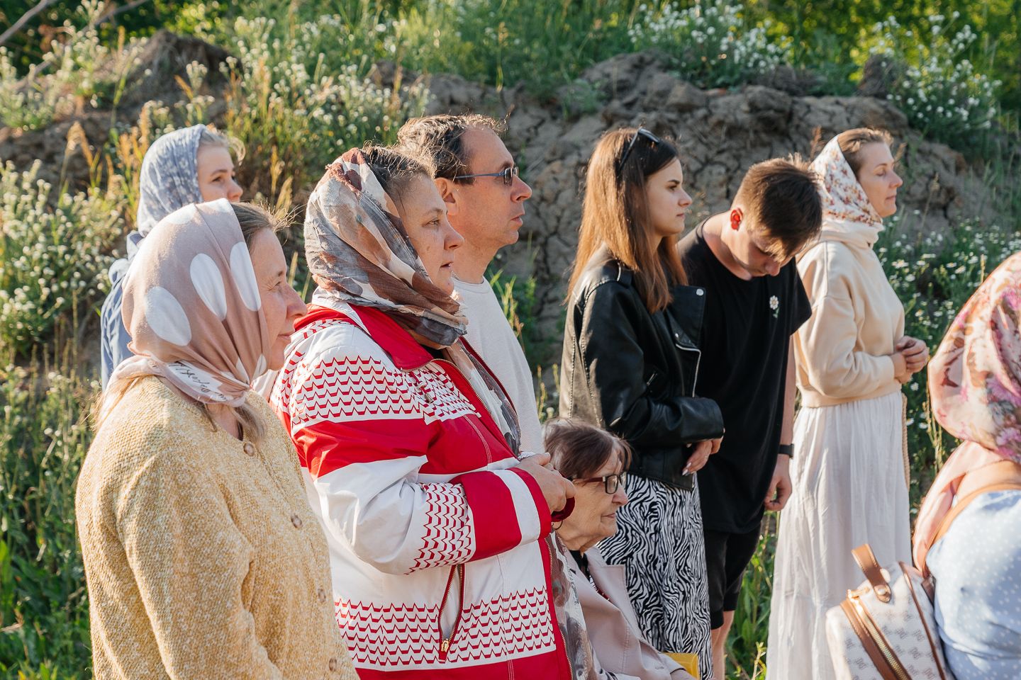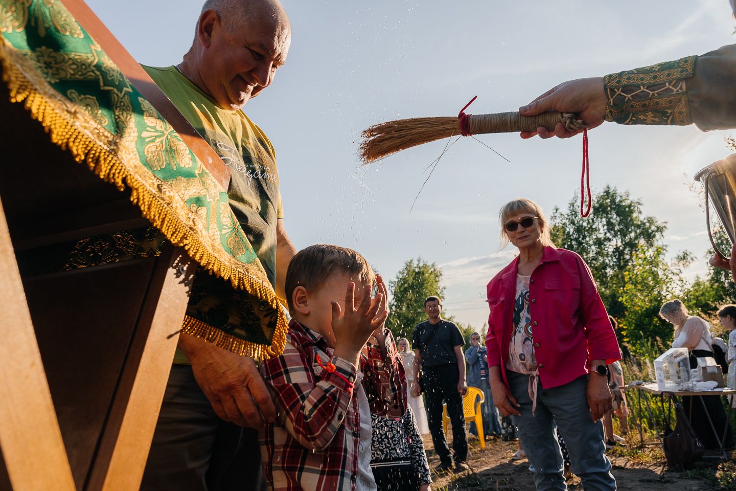Отец Александр окропил святой водой кирпичи перед дальнейшей работой строителей по возведению стен храмового здания, а также после краткого молебна святым покровителям храма окропил водой каждого присутствующего на молебне молитвенника. Батюшка передал собравшимся слова приветствия от Правящего Архиерея, а также сказал краткую проповедь, призвав неустанно жертвовать на строительство храма и помогать в строительстве любым возможным способом.